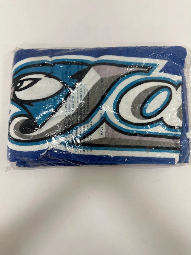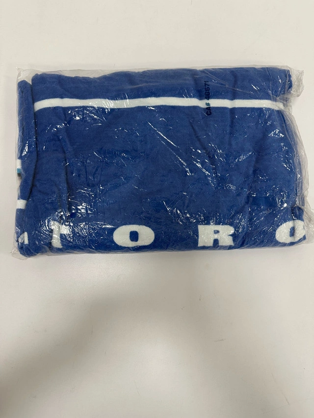This is a brand new Toronto Blue Jays beach towel, still sealed in its original packaging. Perfect for showing your team spirit at the beach, pool, or even as a decorative piece in your home. The vibrant colours and bold Blue Jays logo make it a must-have for any fan. This towel has never been opened or anything, so it is in flawless condition and ready to use or collect. It's a fantastic way to support your favourite team while enjoying the summer. If the ad is up, the towel is ready!