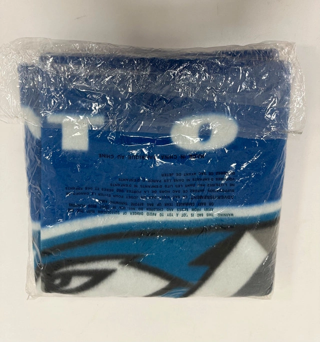 Snuggle up in style with this brand new Toronto Blue Jays fleece blanket, still sealed in its original packaging! Perfect for staying warm during those chilly games or adding a touch of team spirit to your home decor. It's super soft and cozy, making it ideal for both kids and adults. Show off your Blue Jays pride with this must-have accessory. If the ad's still up, it's still available, so no need to ask!