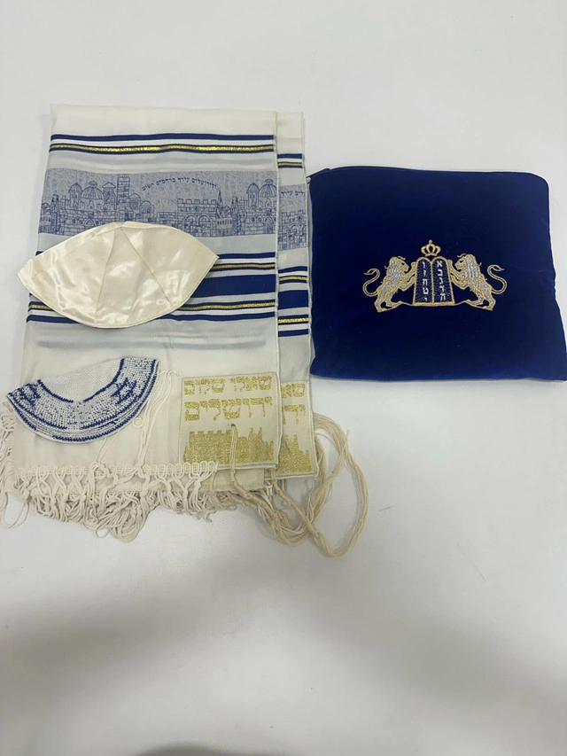 Find solace and connection with this used, but in good condition, complete Tallit set, including the Tallit prayer shawl, kippah, and velvet bag! The set has been gently used, but is still in very good condition. The median price of a set like this is about $100 CAD, I'm asking $75. If the ad is still up, it's still available!