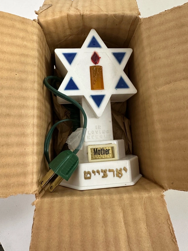 Add a touch of vintage charm to your Hanukkah celebrations with this Kurt Adler Star of David tree topper! This unique piece features a Star of David design with a central candle accent, perfect for adding a special glow to your holiday decor. Note that this is a used item. Specifications: * Brand: Kurt Adler * Design: Star of David with Candle * Intended Use: Tree Topper * Condition: Used Looking for a little something to brighten up the holidays? This could be it! And yes, if the ad's still up, it's still available! Based on similar listings on Kijiji, I'm pricing this vintage beauty at $20 CAD.