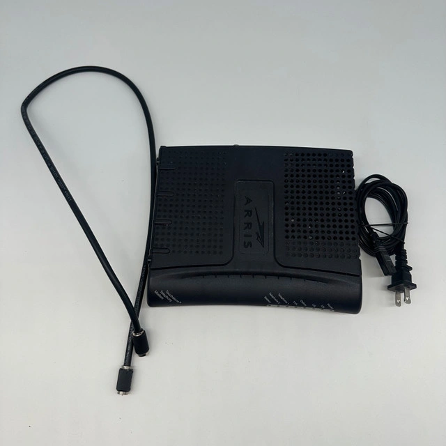 Offering an Arris TM602G cable modem in good, used condition, perfect for reliable internet connectivity. This modem is a TM602G/P2/NA-8 model, ensuring compatibility with various cable internet providers. It’s ready to plug in and get you back online quickly! Additional Specs: * Model: TM602G/P2/NA-8 * Connectivity: Cable * Ports: Ethernet If you're seeing this ad, the modem is still available, so no need to ask!
