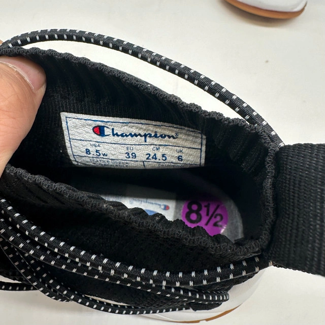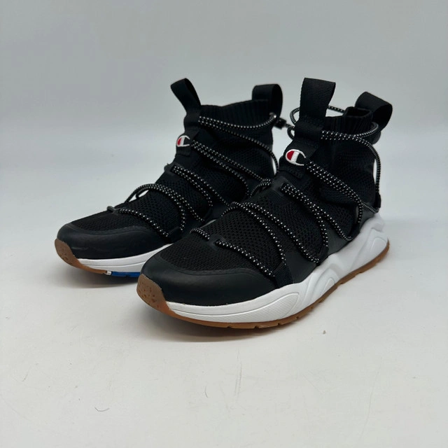 Step up your footwear game with these Champion Women’s High-Top Sneakers in size 8.5. These stylish sneakers are new without tags. They feature a sleek black design with a distinctive lace-up front, a comfortable high-top silhouette, and a durable rubber sole, perfect for everyday wear or light athletic activities. Here are some additional details: * Brand: Champion * Style: High-Top Sneakers * Colour: Black * Size: Women's 8.5 * Condition: New without tags These sneakers are a great addition to any wardrobe. If the ad is up, they are still available!