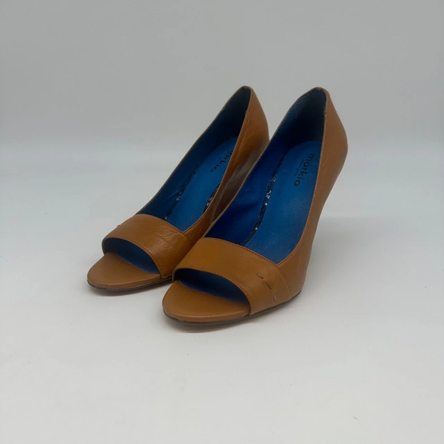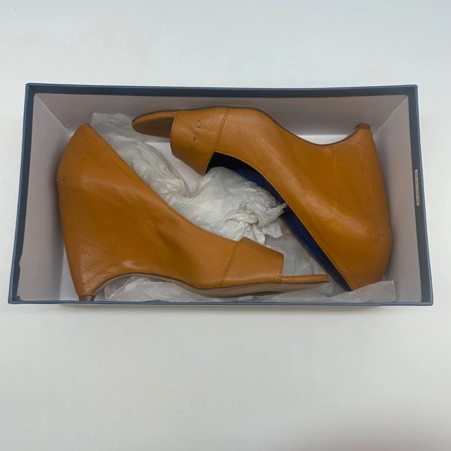 Brand new Biviel Couture women's camel leather wedge peep-toe shoes, perfect for adding a touch of sophistication to any outfit. These shoes combine fashion and comfort, making them a must-have addition to your wardrobe. Brand: Biviel Couture Colour: Camel Toe Style: Peep Toe Style: Wedge Material: Leather If you're seeing this ad, these stylish wedges are still available!
