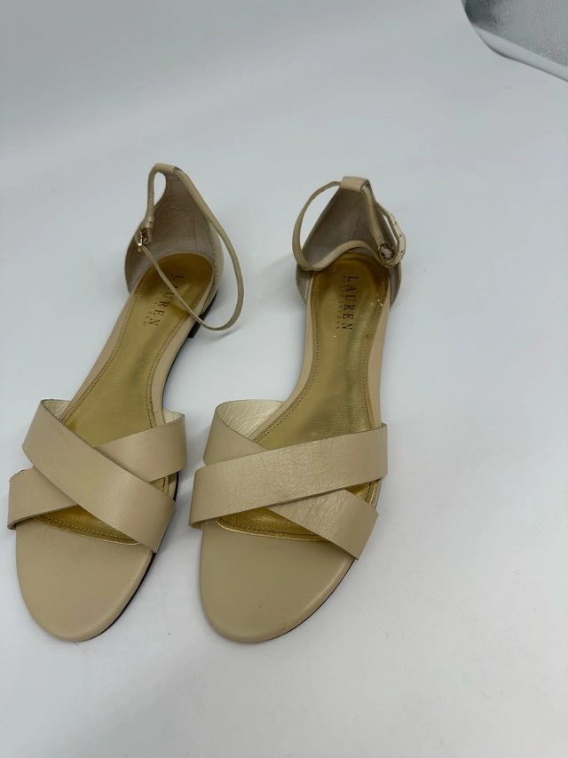 Step into effortless style with these Lauren Ralph Lauren women’s sandals, size 8.5B (US). These elegant, cross-strap sandals come in a sophisticated beige colour and are crafted with a leather upper. Perfect for adding a touch of class to any outfit. Note that they are used, but still have plenty of life left. Key features include: * Brand: Lauren Ralph Lauren * Size: 8.5B (US) * Colour: Beige * Material: Leather upper * Style: Cross-strap sandals I'm asking $40 CAD. Don't miss out—if the ad's up, they're available!