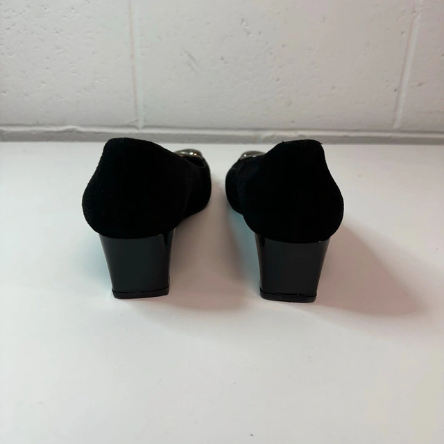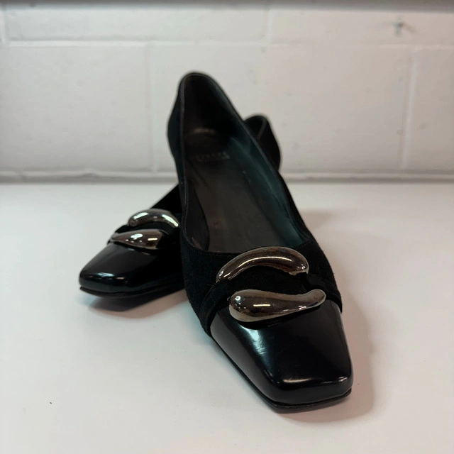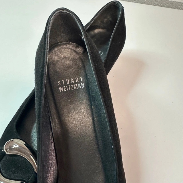 Stuart Weitzman heels, size 9, featuring a chic combination of black suede and patent leather. These elegant heels are perfect for adding a touch of sophistication to any outfit. Key Features: * Brand: Stuart Weitzman * Size: 9 * Material: Suede and patent leather * Colour: Black If the ad is up, they are still available.