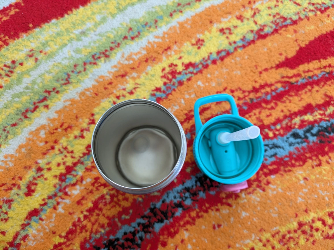 Paw Patrol Skye stainless steel water bottle. It has a handle and straw, perfect for your little one