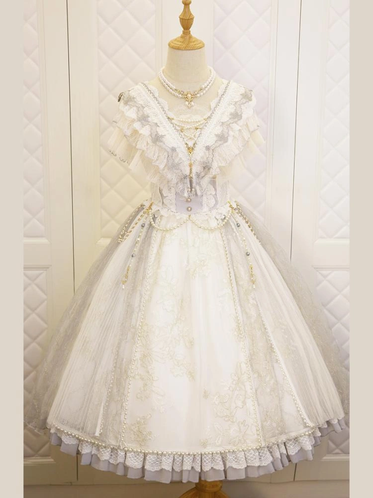 Selling a beautiful Lolita dress set in white lace! This set includes multiple pieces, all elegantly designed with intricate details. Perfect for anyone interested in Lolita fashion or special occasions. The set appears to be in great condition!