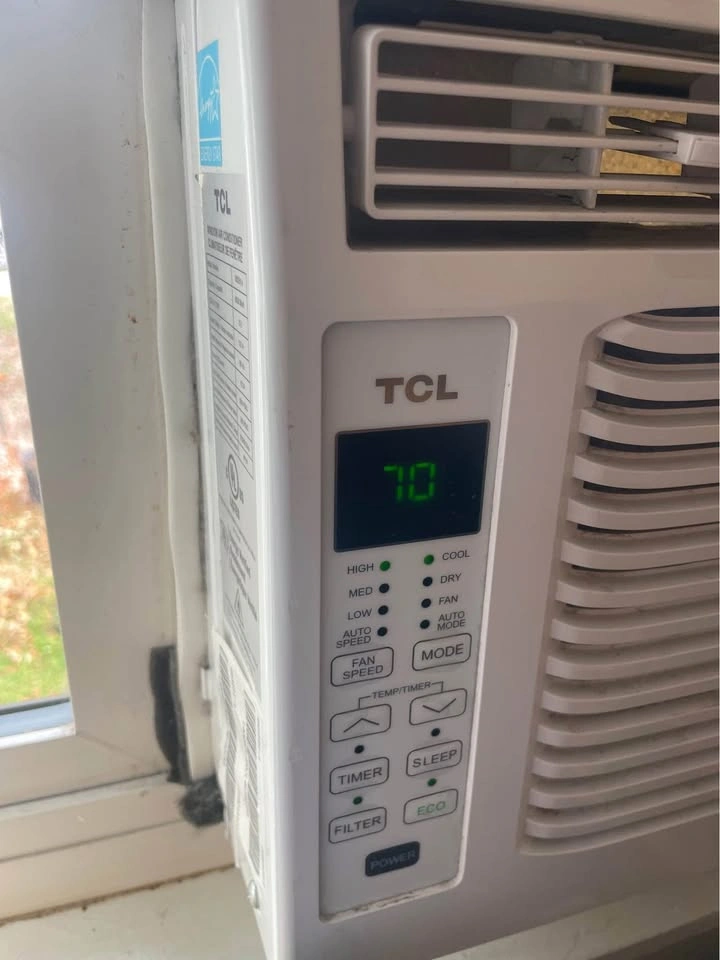 Selling my TCL 6,000 BTU window air conditioner (Energy Star certified). Perfect for rooms up to 250 sq. ft., but I’ve used it to cool my entire 1-bedroom apartment with no problem. Features cooling, fan, and dehumidifier functions plus remote control, Sleep & Eco modes, and a washable reusable filter. Works perfectly — only selling because I’m moving. Paid $290 with tax (retails for $249 before tax). Easy to install in most window types (I had it set up in a vertical window and will include the metal bar I used). Also easy to take down and store — though I’ve kept it up all year. Pickup only.
