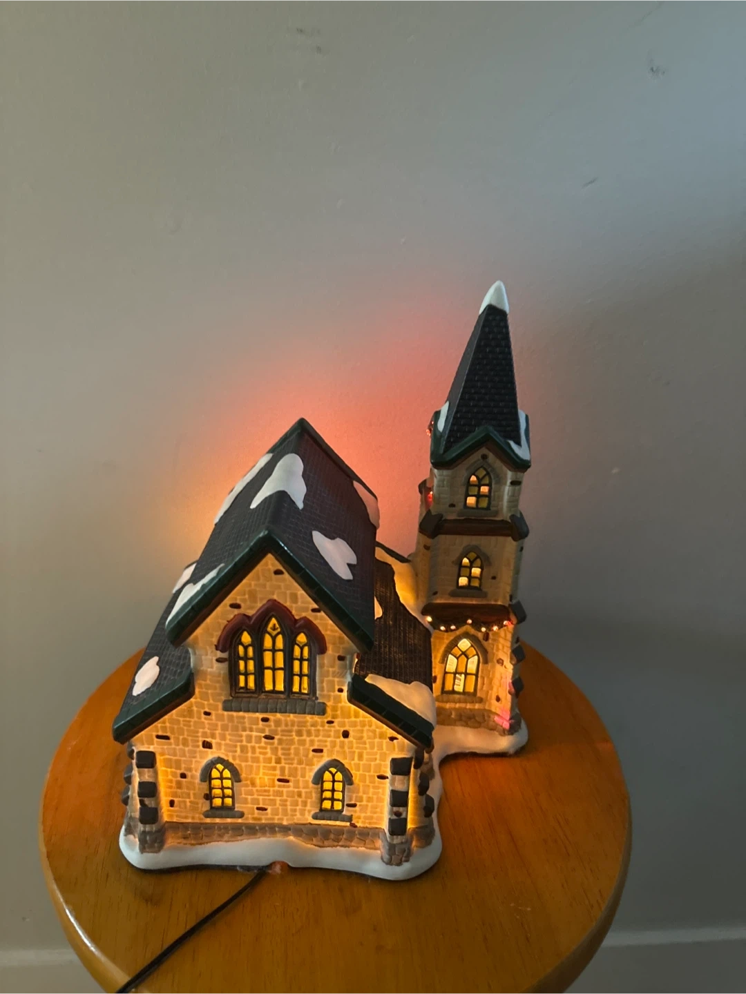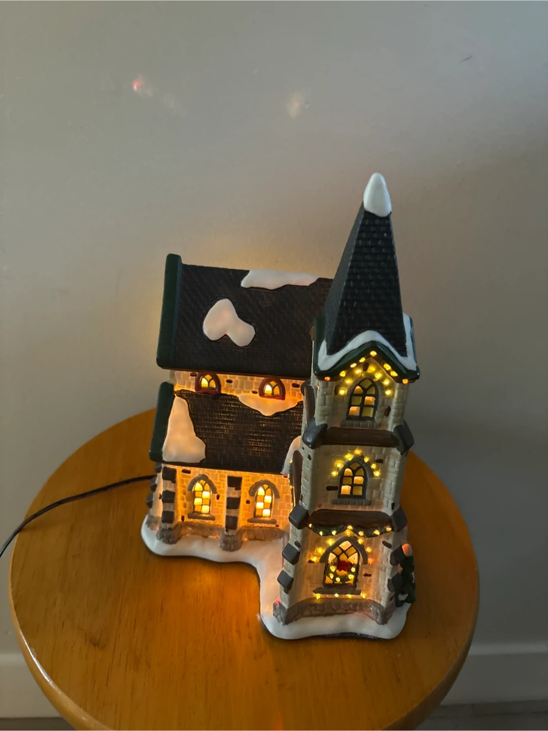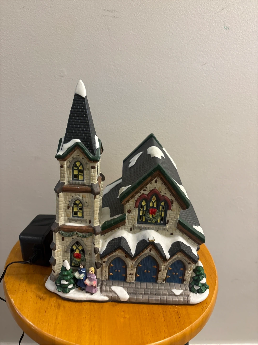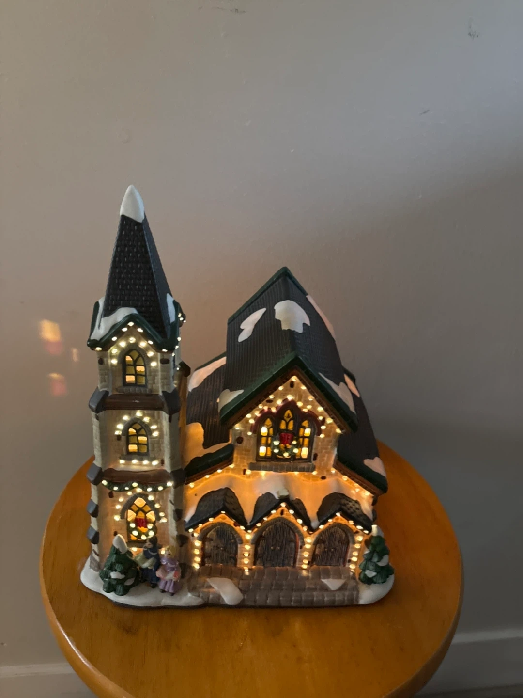 A charming addition to your holiday decor! This lighted Christmas village church is perfect for adding a warm and festive glow to any room. It's in great condition and ready to bring some holiday cheer to your home