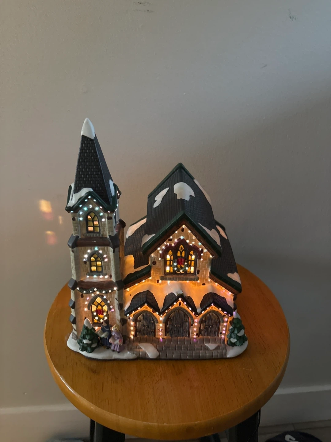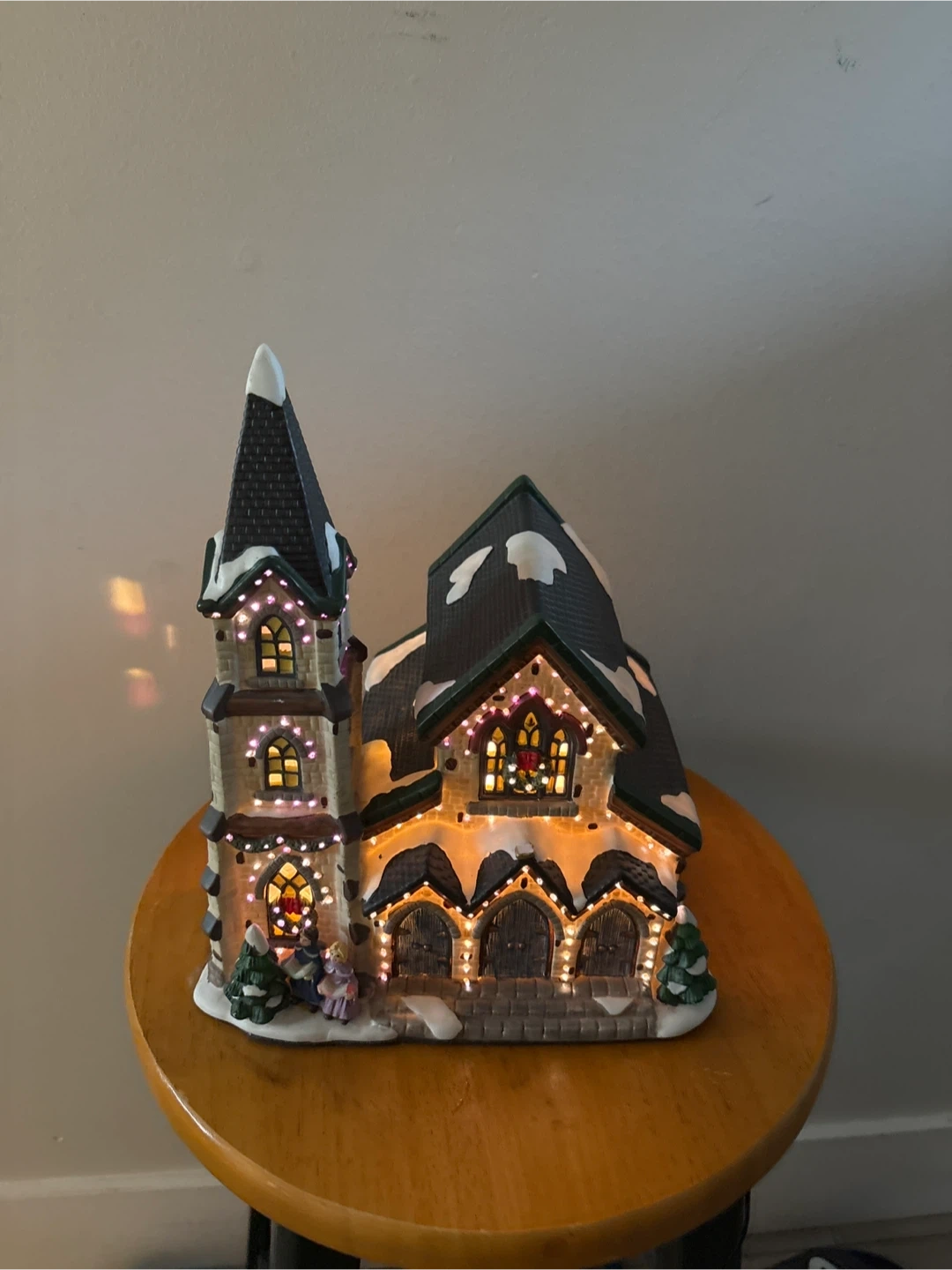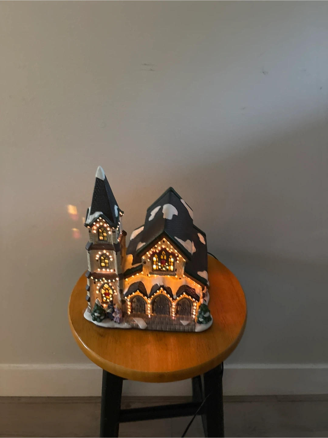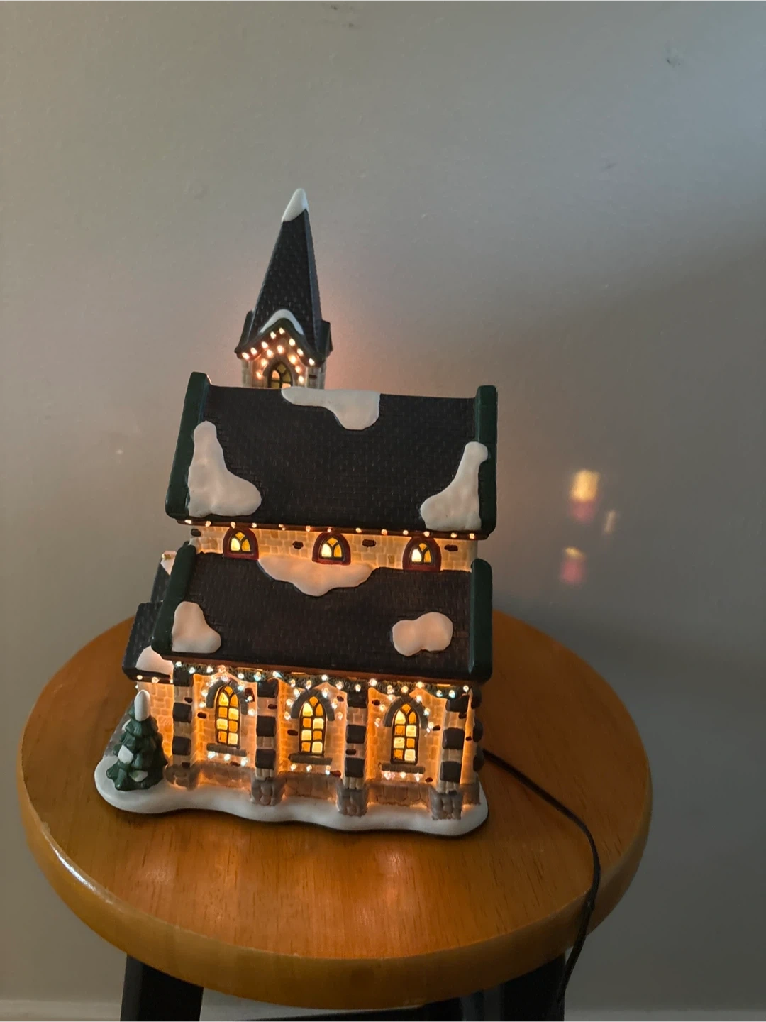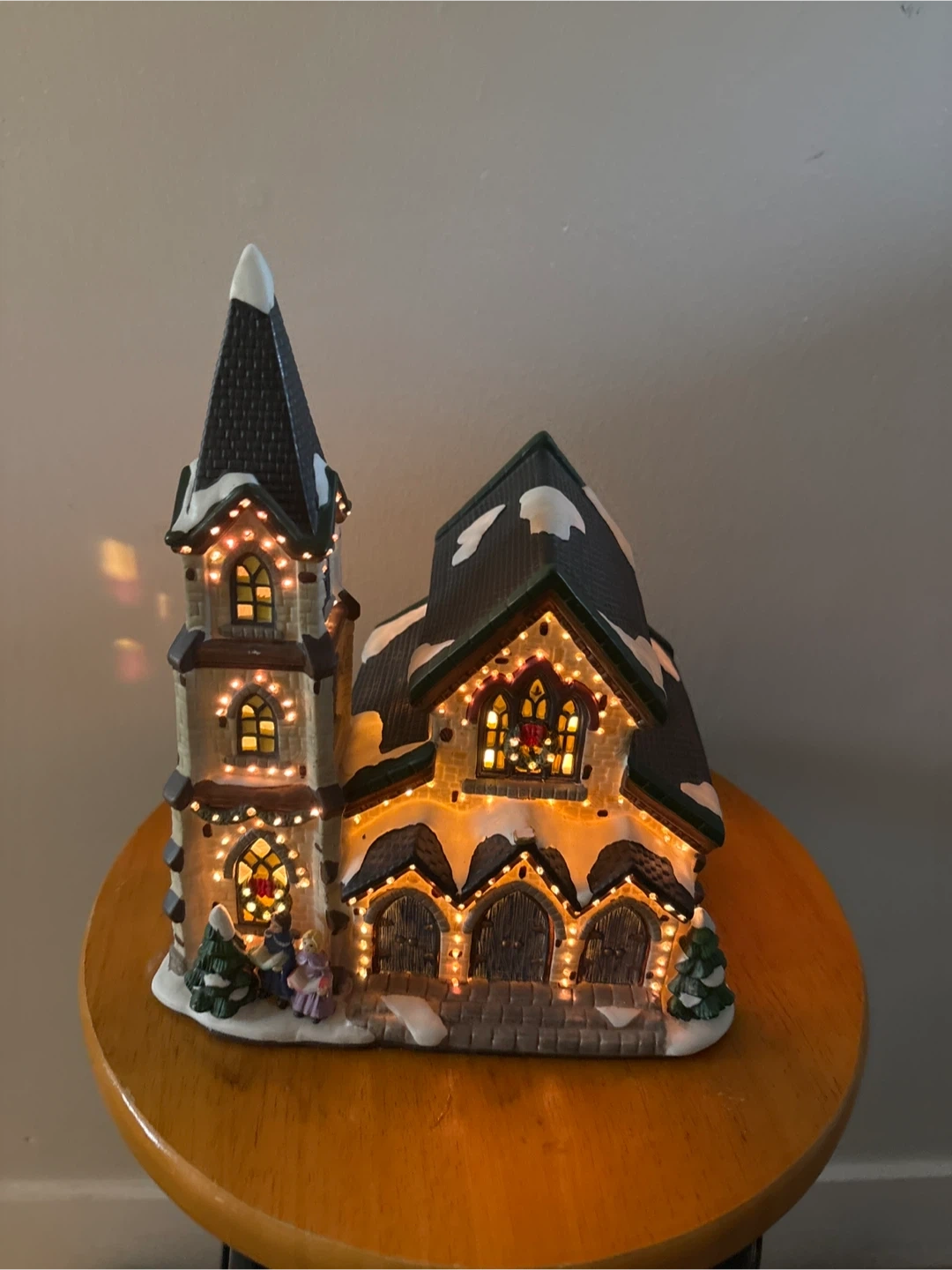 A charming addition to your holiday decor! This lighted Christmas village church is perfect for adding a warm and festive glow to any room. It's in great condition and ready to bring some holiday cheer to your home