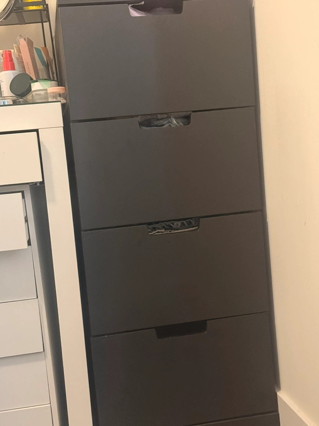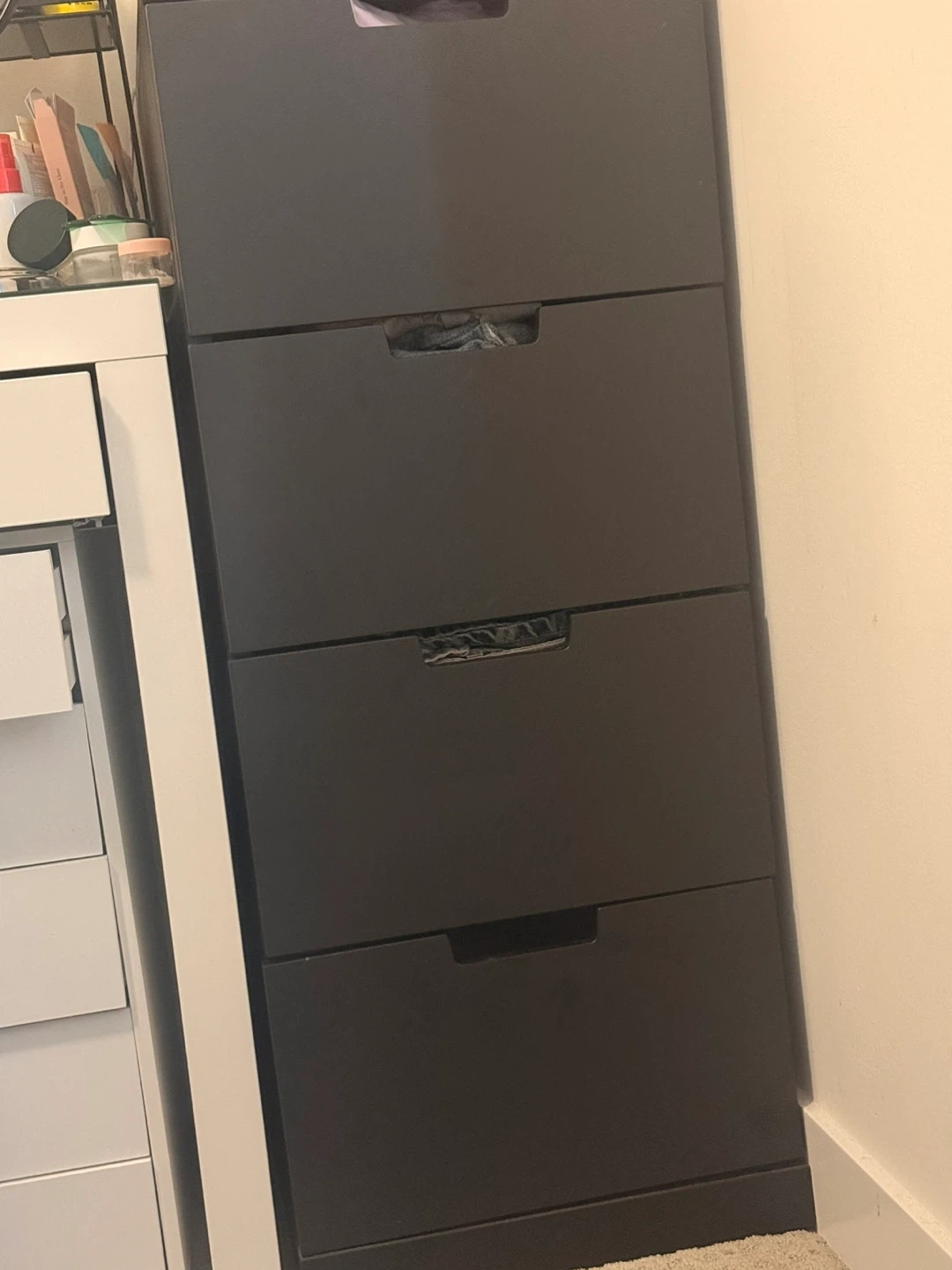 Selling a black-brown IKEA Nordli chest of 4 drawers! It's great for adding storage to any room. The drawers slide smoothly, making it easy to access your belongings. It's in good condition and ready for a new home.