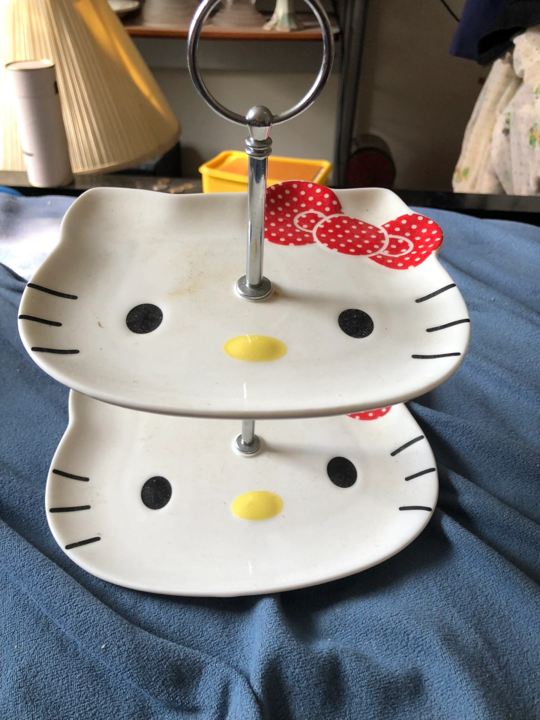Here's a super cute Hello Kitty 2-tiered serving tray by Verdici Design! It's perfect for displaying treats or adding a touch of whimsy to your kitchen or dining area. Please note that it is hand wash only. All sales are final.