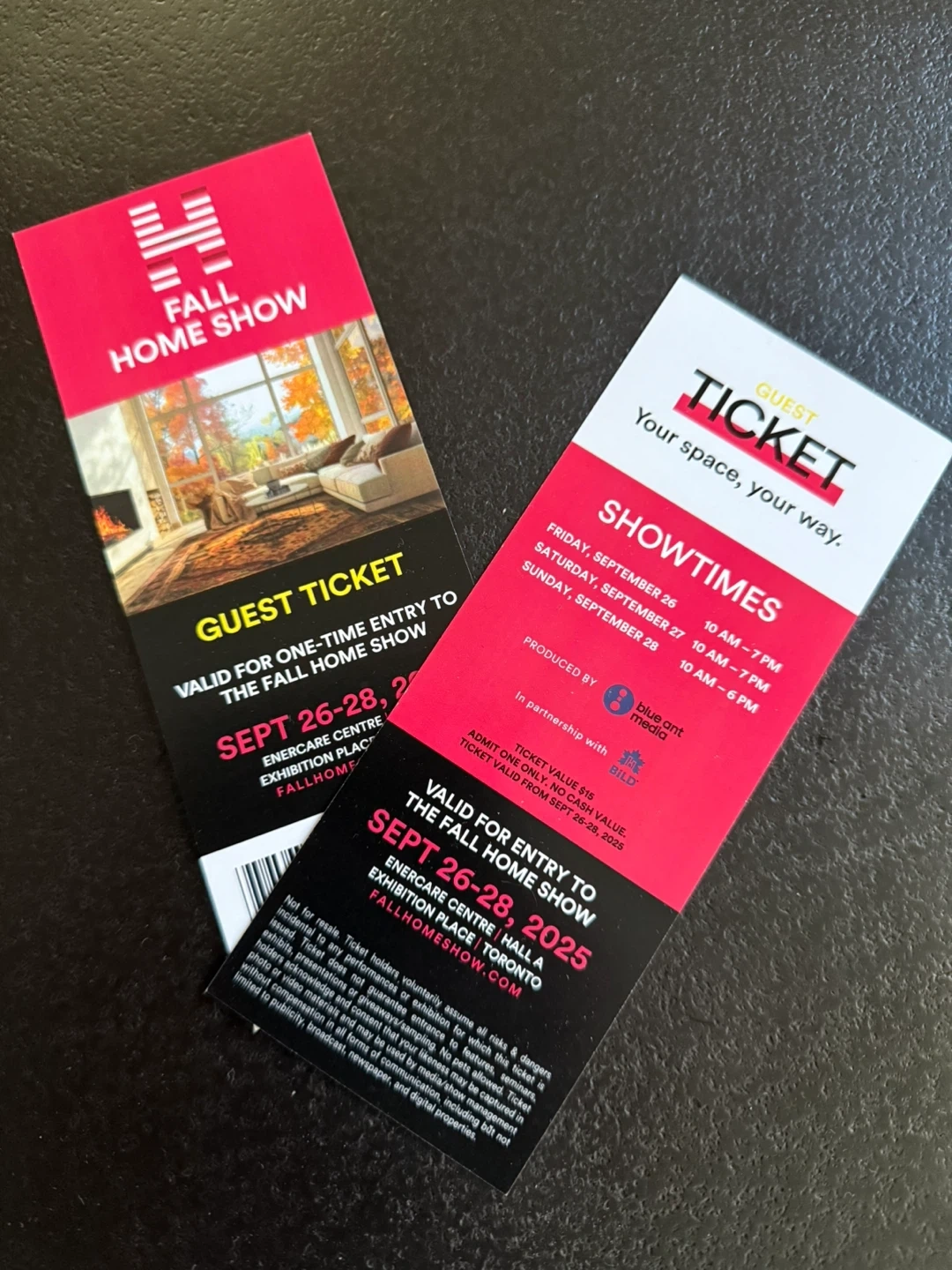 Guest ticket valid for the Fall Home Show at the Enercare Centre, Exhibition Place, Toronto! Valid for one-time entry from September 26-28, 2025 Ticket value is $15