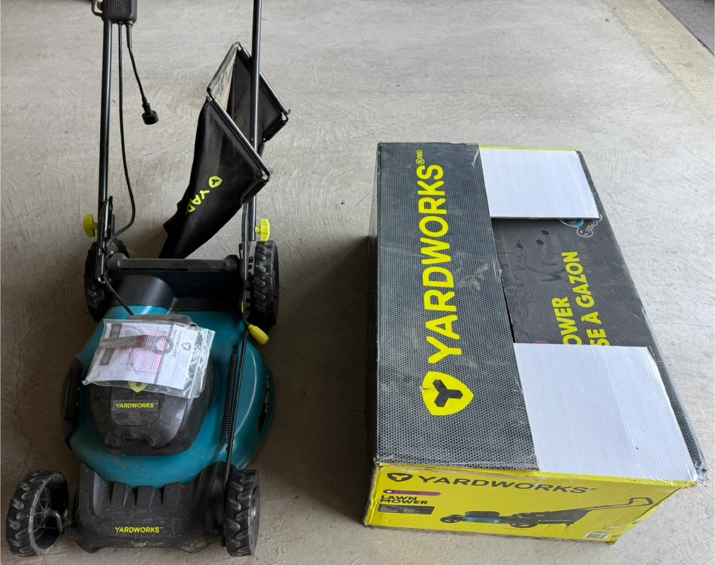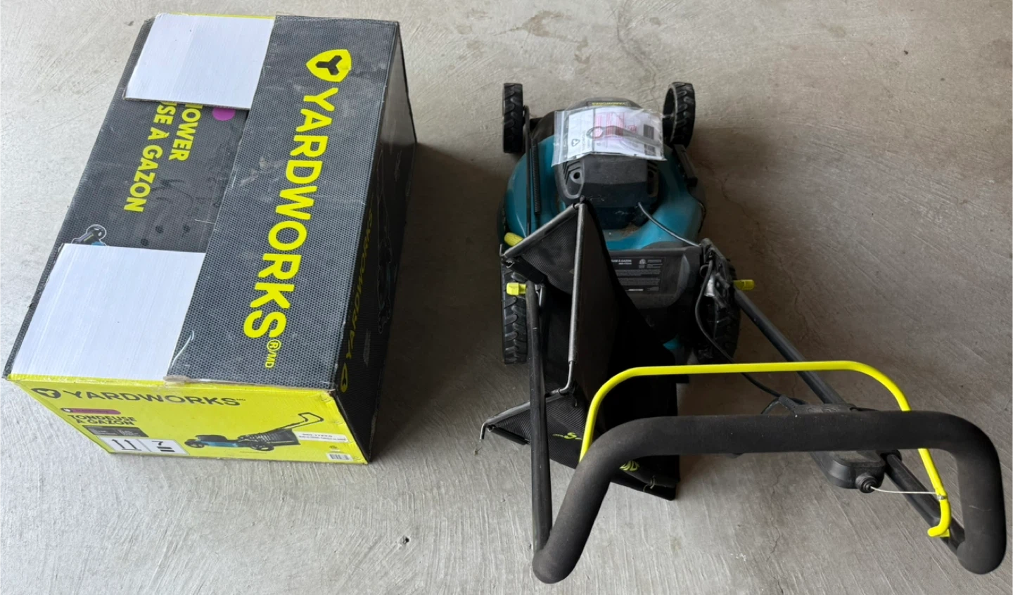 Selling a Yardworks cordless lawn mower. It comes with the original box. Great for keeping your lawn tidy without the hassle of cords!