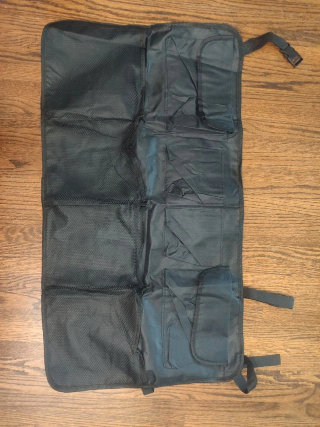Car Organizer Backseat Car Storage for SUV Trunk – Car Trunk Tidy Storage Bag with Lids Features: ✔️ Large Capacity with 8 Pockets – Includes 4 strong net pockets for bottles, umbrellas, snacks, and 4 oxford pockets for tools, toys, groceries, tissue boxes, tablets, books, maps, and more. 2 pockets come with privacy lids for personal items or emergency supplies ✔️ High Quality & Durable – Made of sturdy Oxford 600D material, waterproof, scratch-resistant, and built to last for years of daily use ✔️ No Swing Design – Equipped with 3 strong straps and 4 stable magic sticks to keep the organizer securely in place without swinging while driving ✔️ Universal Fit & Easy Install – Size: 34 x 18 inches, fits 90% of cars/SUVs. Installs in seconds by attaching adjustable straps to the backseat headrest – no tools needed ✔️ Easy to Clean & Maintain – Durable fabric resists dirt and wipes clean effortlessly ✔️ Multi-Purpose Storage Solution – Keeps your car tidy, organized, and clutter-free for work, travel, kids, or outdoor activities Condition: Brand New, in package Price: $10 Pickup: T2W 5C8 Cedarbrae SW Payment: Cash only, price is firm ✔️ NO HOLDS Declutter your car today with this versatile backseat trunk organizer – message for details or photos!