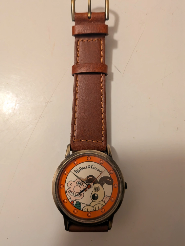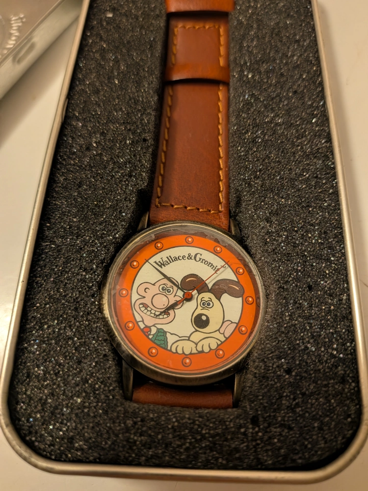 Selling a Vintage 1970's Wallace & Gromit watch! It comes with its original metal case. The watch features a brown leather strap and the iconic duo on the face. A fun collectible for any fan! New, not worn. Outer case has a couple of tiny marks Cash only, no etransfers Location: Etobicoke. Rathburn Rd and Renforth dr. Etobicoke Olympium nearby