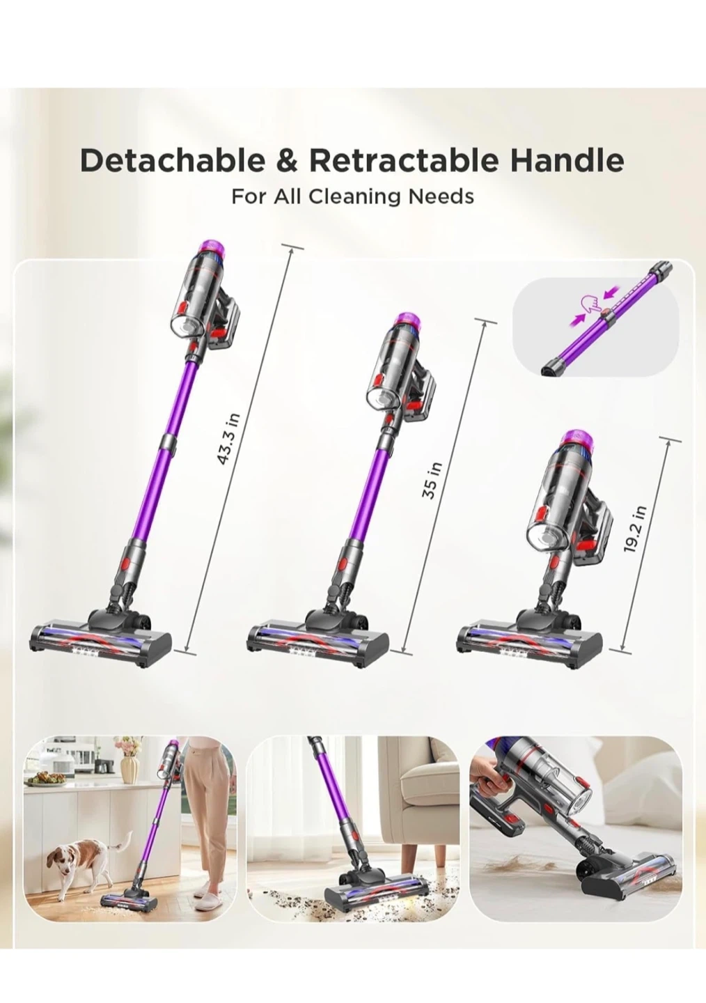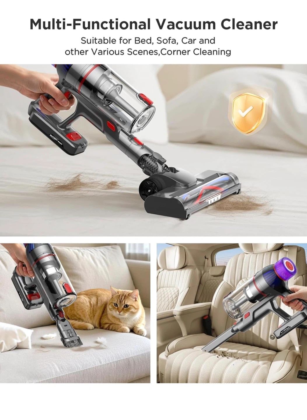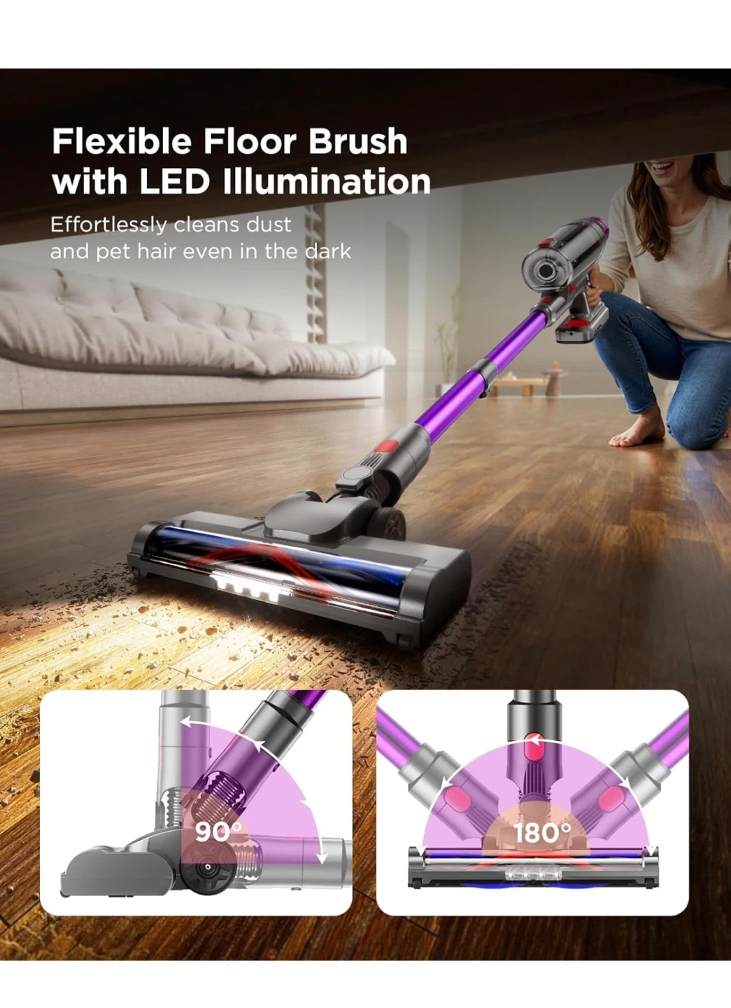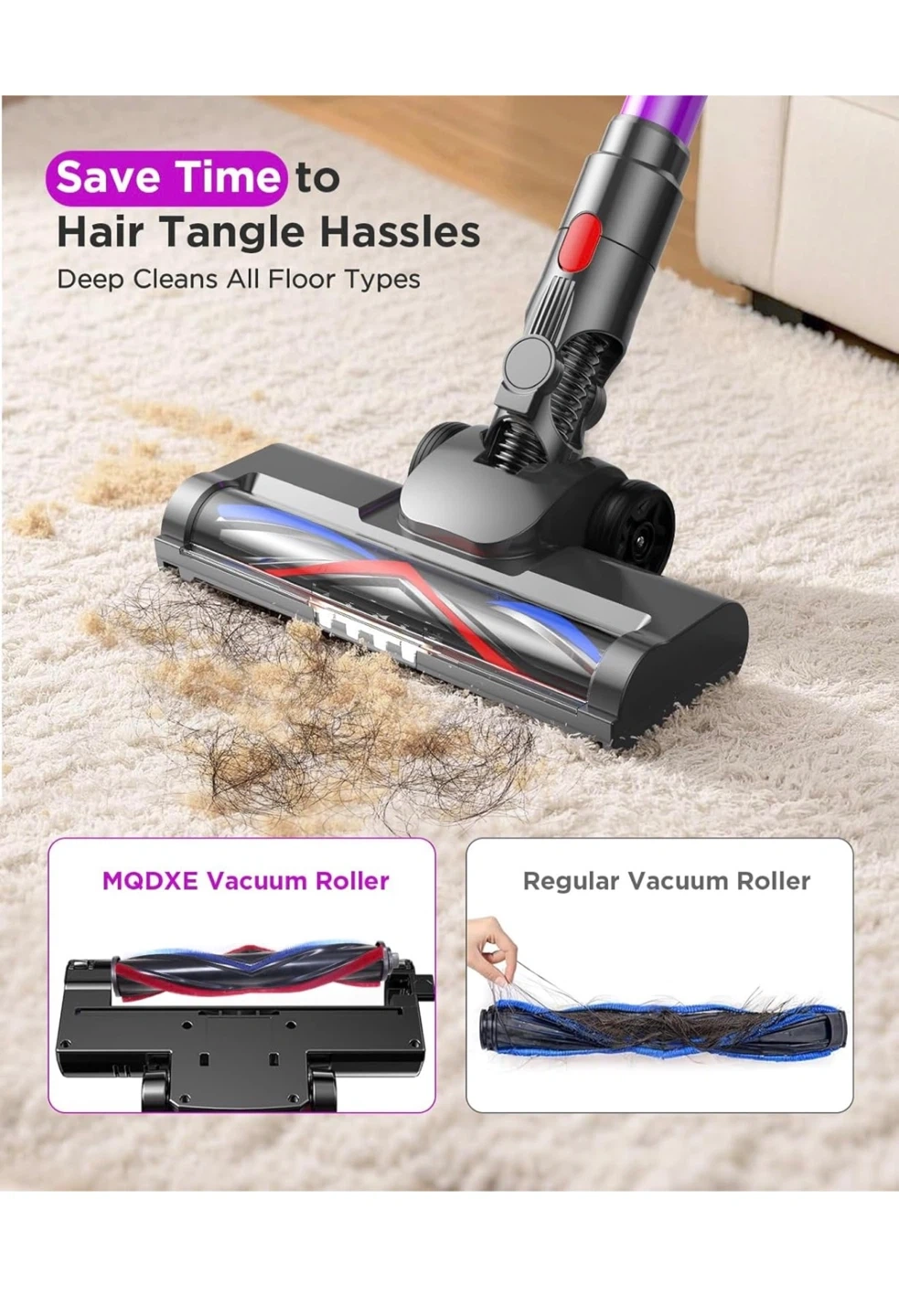 This MQDXE cordless stick vacuum cleaner is perfect for deep cleaning all floor types! It features a detachable & retractable handle for all cleaning needs. Key features: - Hair tangle hassles - Flexible floor brush with LED illumination - Ergonomic & lightweight for easy handling