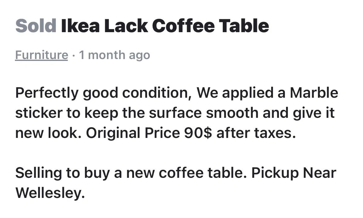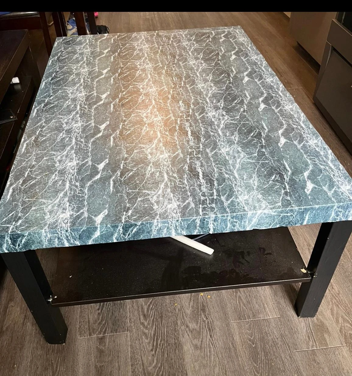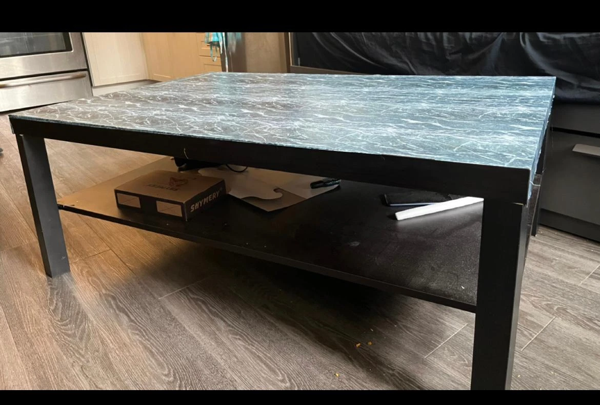 Perfectly good condition. There is marble sticker to keep the surface smooth and give it a new look. Original price $90 after tax Purchased it from Karrot only Selling it as its bigger as compared to our room size.
