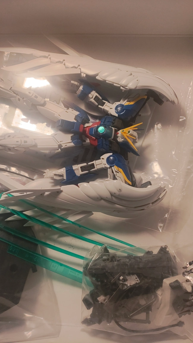 One fully-assembled MG wing Gundam ver. Ka (+water decals included) and a kotobukiya kit (decals applied). Instructions included. pickup Queen & Spadina