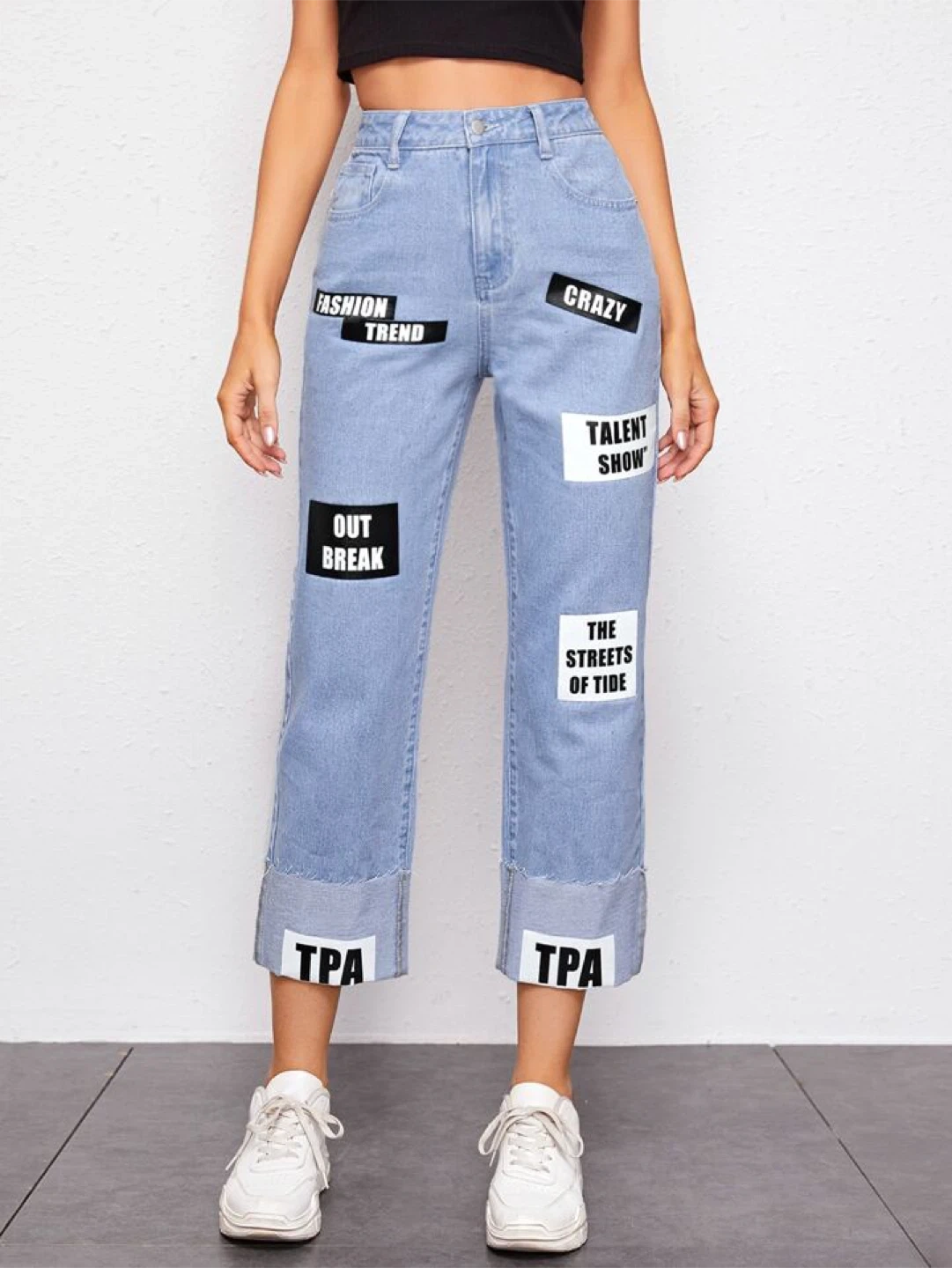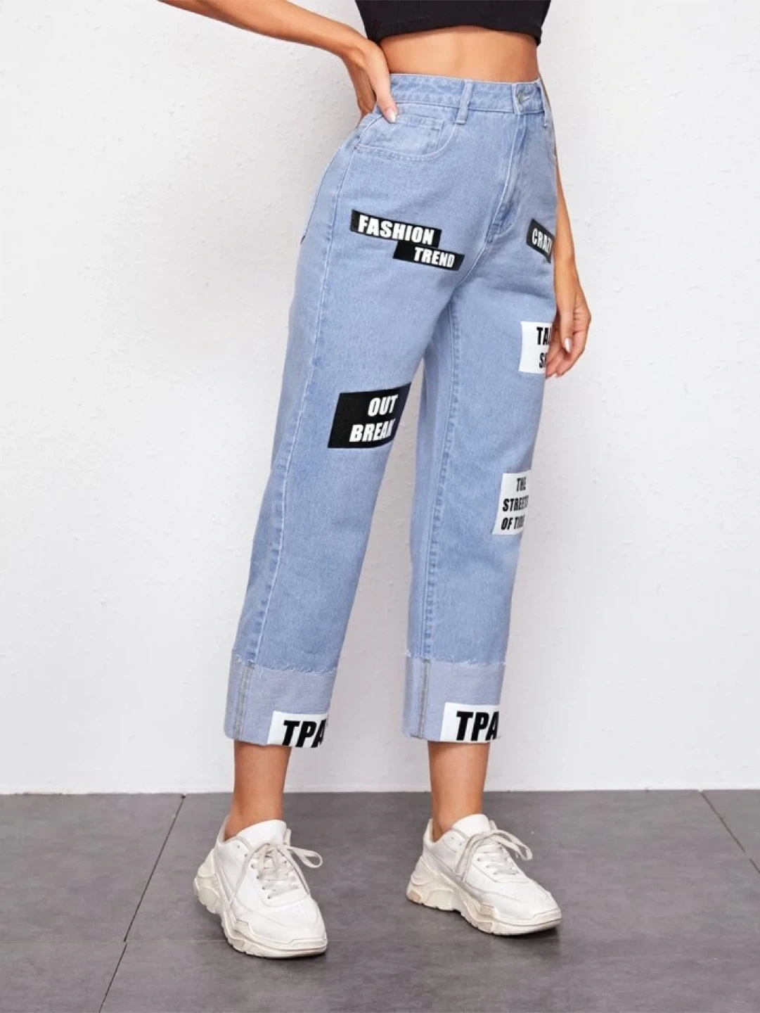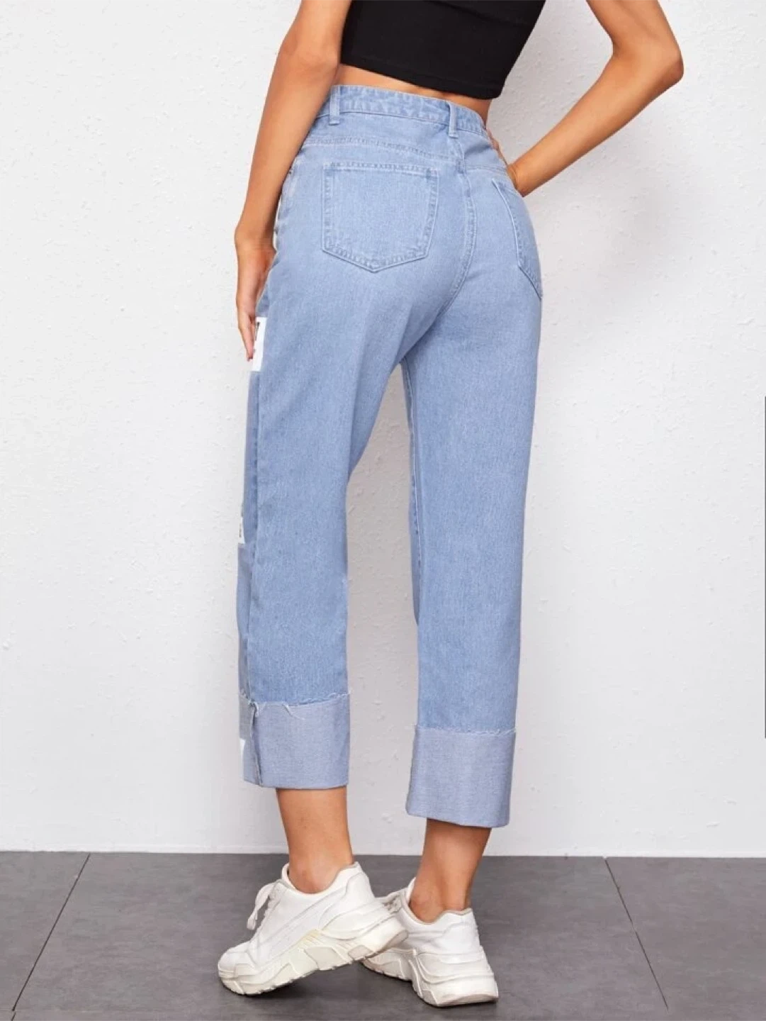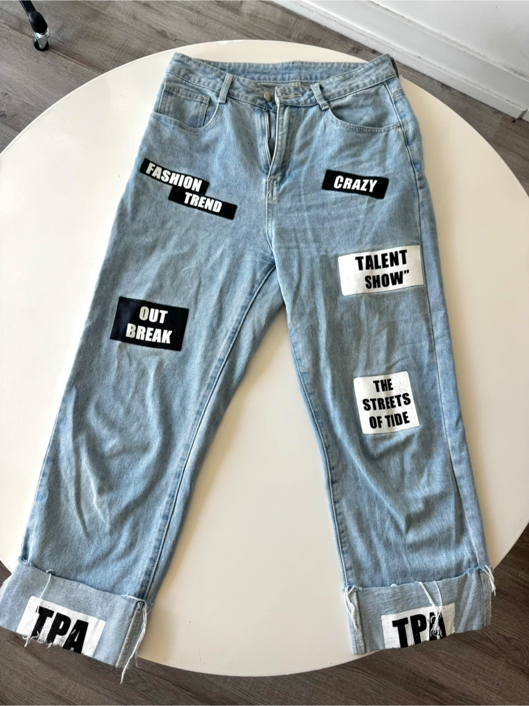 Cute light blue jeans with fun patches and cuffed hems! They're in great condition and ready for a new home