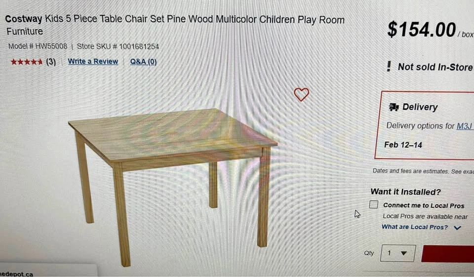 Cost Way, Kids Pinewood table. Brand new in original box. Never been assembled. Measurements 26” x 22”. Leg height 19 inches. Regular price $154 + tax. Pick up in Woodbridge or Mississauga