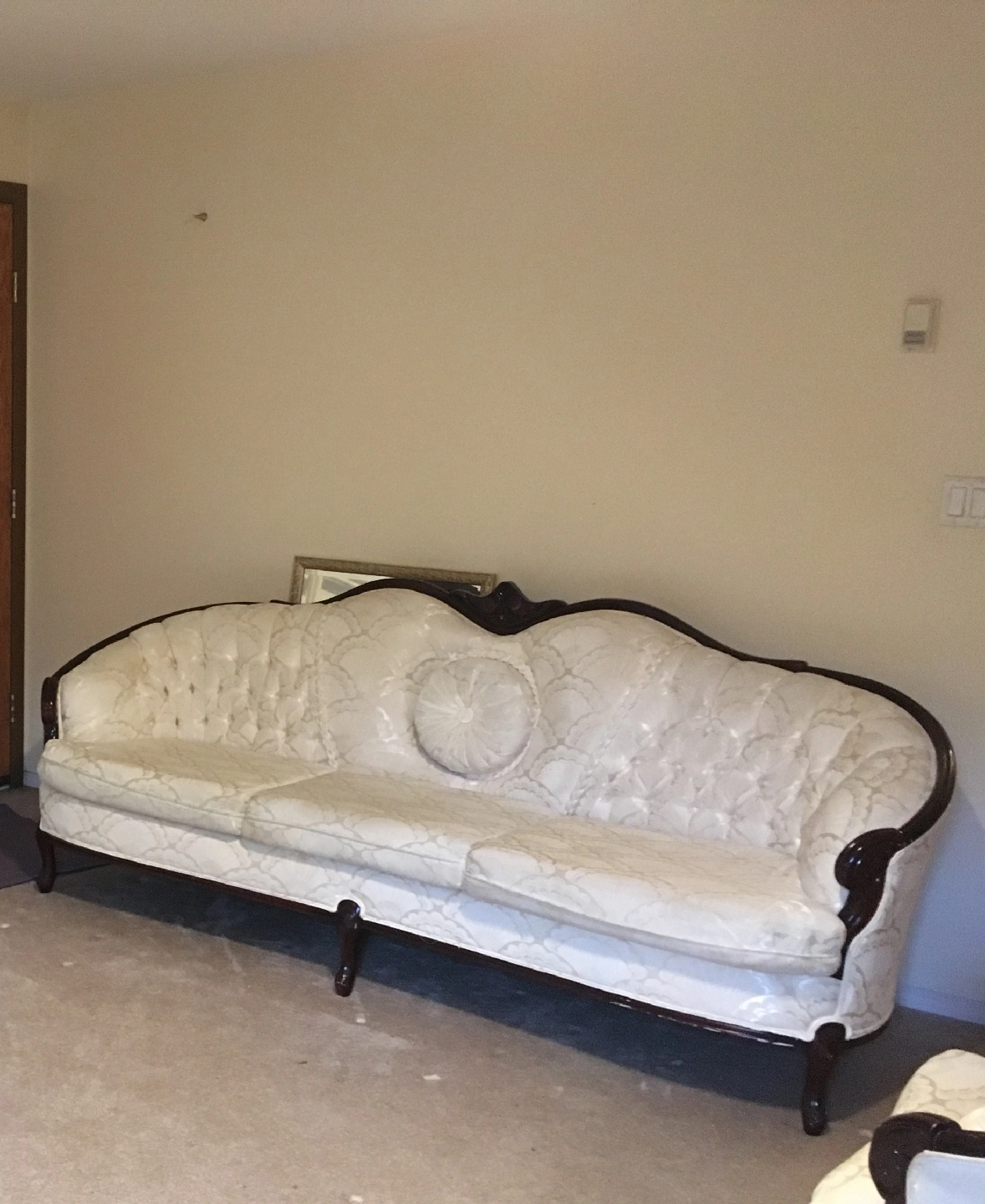 Selling a beautiful antique-style sofa set. The set features a unique design with a dark wood trim and cream-coloured upholstery. It would be a great addition to any living room or sitting area! Minor wear and tear, looking for reasonable offers. No low ballers please.