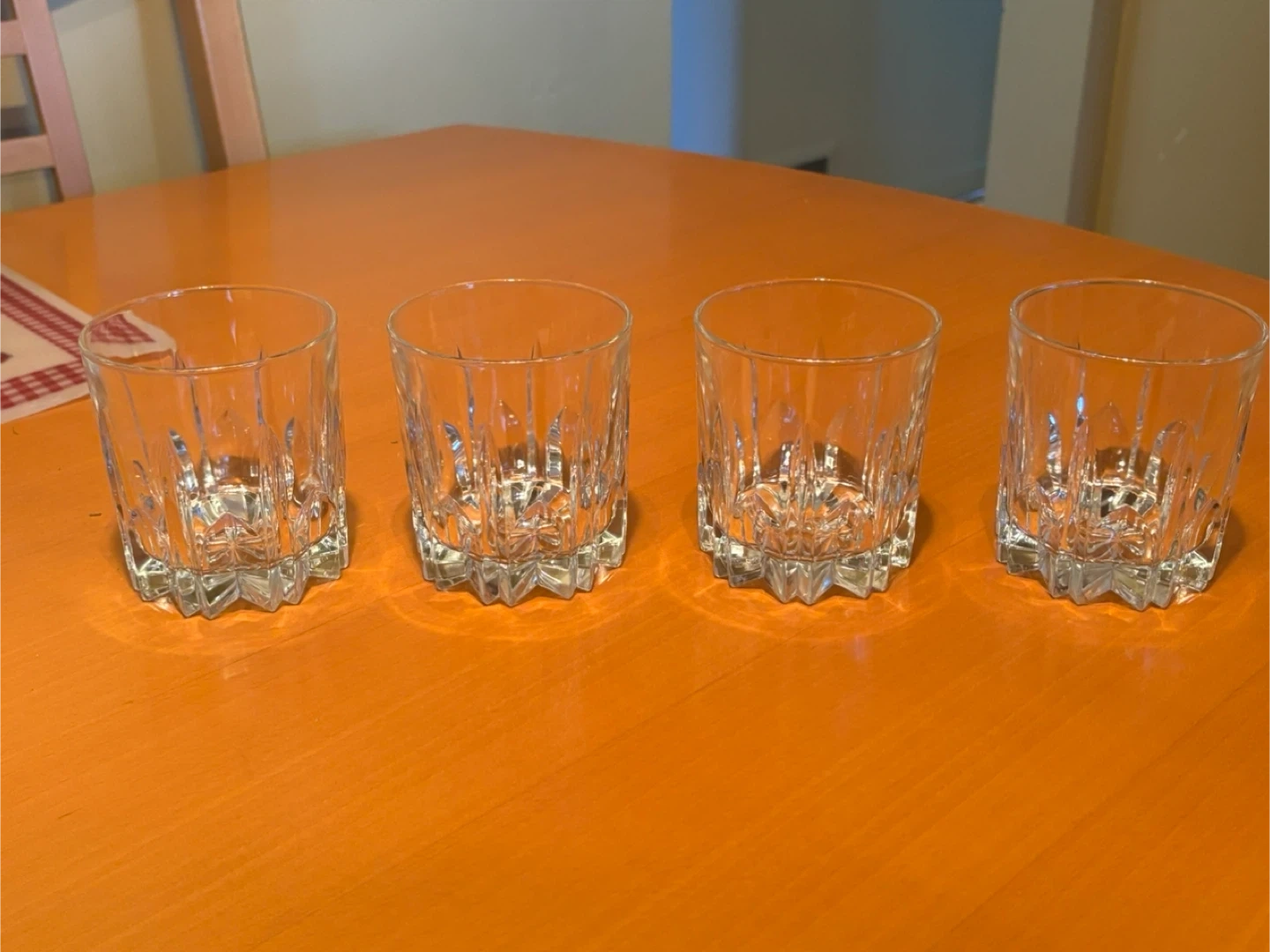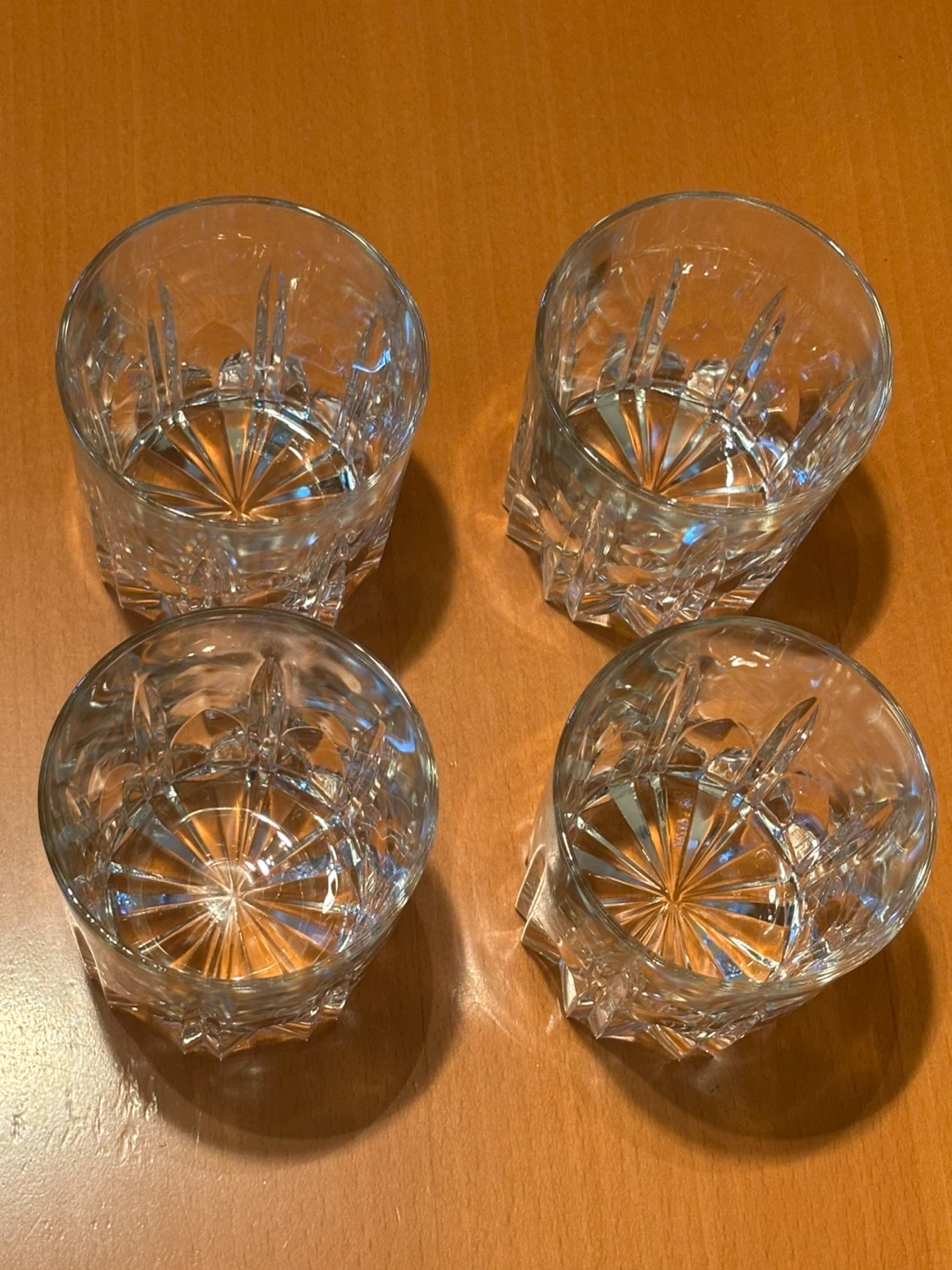 Selling a set of 4 whiskey glasses. **New**. Perfect for enjoying your favourite drink. The glasses have a beautiful design that will add a touch of elegance to your home bar