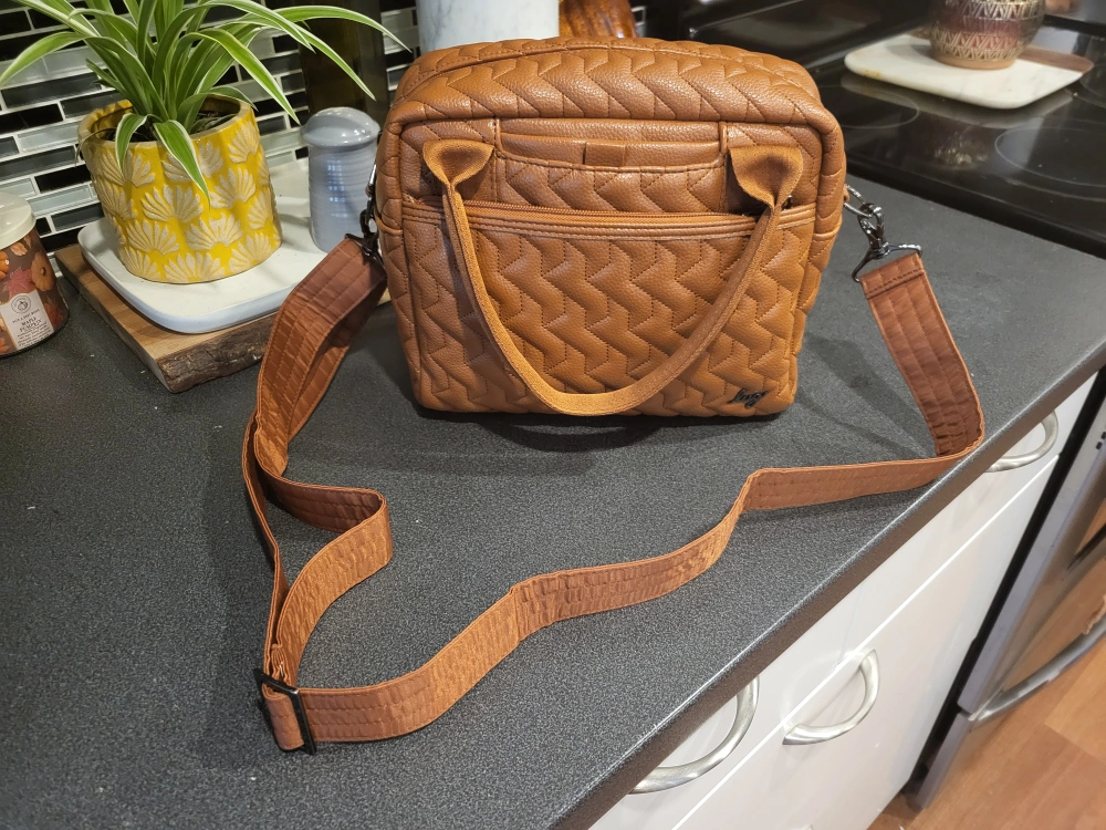 This is a Lug vegan leather Quilted Convertible Bag in great condition! It's a stylish and versatile bag that can be used as a backpack or a shoulder bag. The quilted design adds a touch of elegance, and the convertible straps make it easy to carry. It's perfect for everyday use or travel