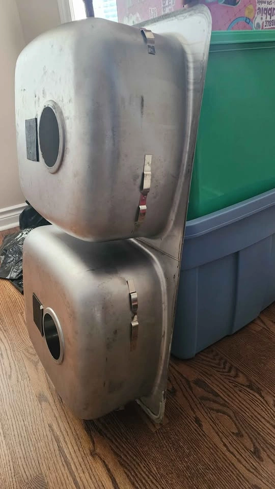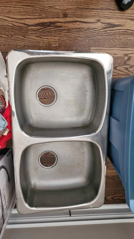 Stainless steel double basin, drop in, sink. Drain covers included. 31 w x 18 1/4 h × 7 in d. 3 3/4 inner drain opening. $65 obo