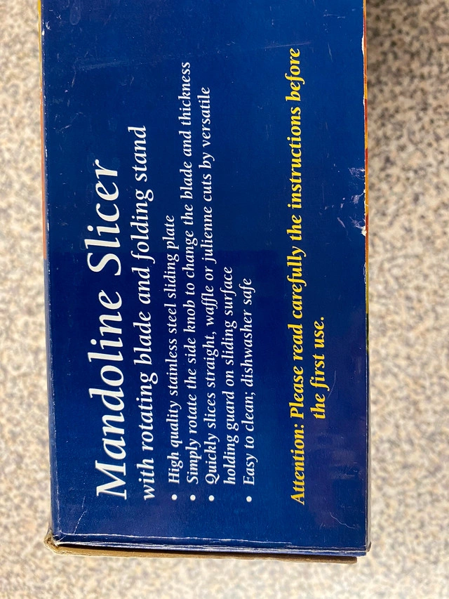 Starfrit mandolin slicer $30 (cash). Pick up Wellesley or College subway. From a pet-free, smoke-free home.