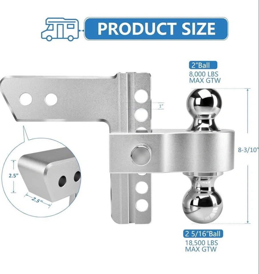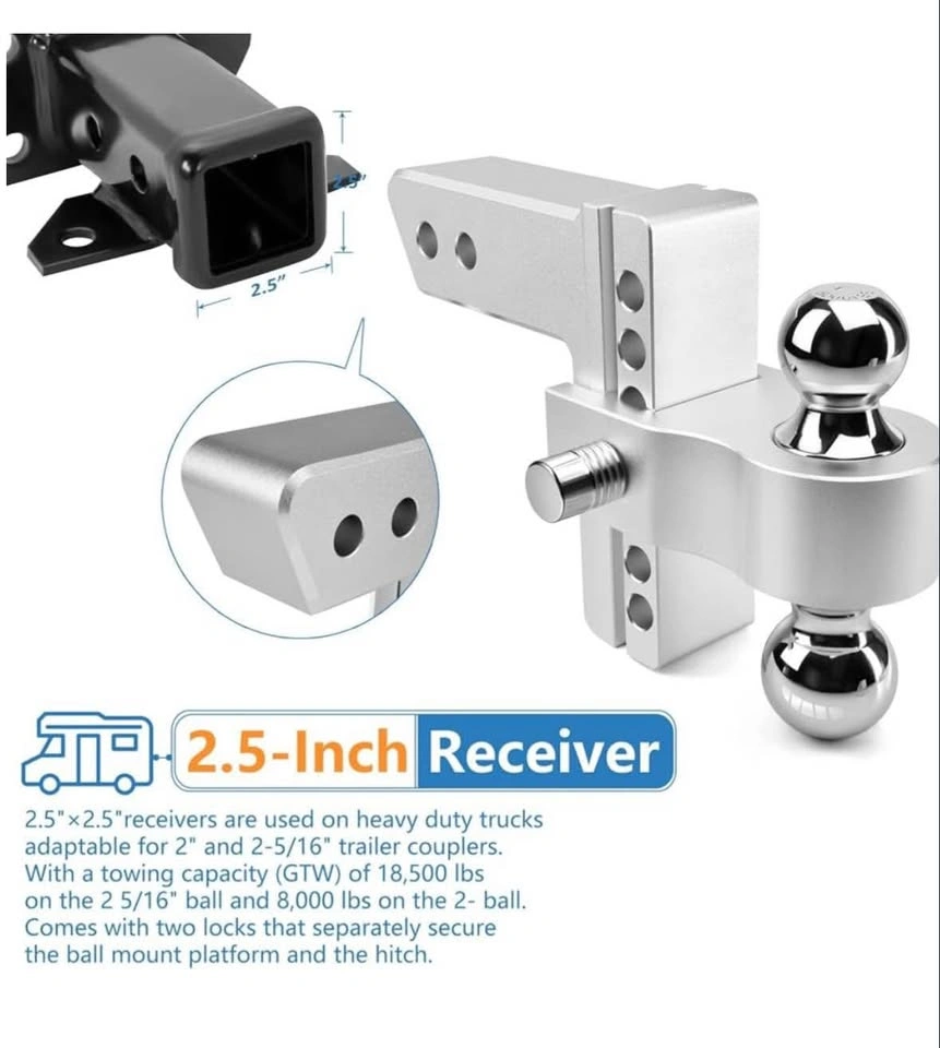 Standard 2.5"*2.5" receiver can perfectly fit any connector of trailer, rear bumper, agricultural machines and dual receiver extender with the same size. Aluminum shank can be adjusted according to your needs. It is ideal for towing and hauling boats, trailers, trucks, campers, livestock trailers, recreational vehicle trailers and more. Feel free to message if you have any questions!