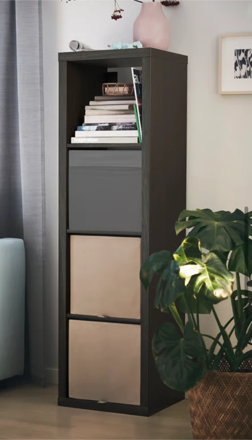 Selling an IKEA Kallax shelf unit in black-brown. It's in great shape and ready to organize your space! This versatile shelving unit can be placed on the floor or mounted on the wall, offering flexible storage solutions for any room.