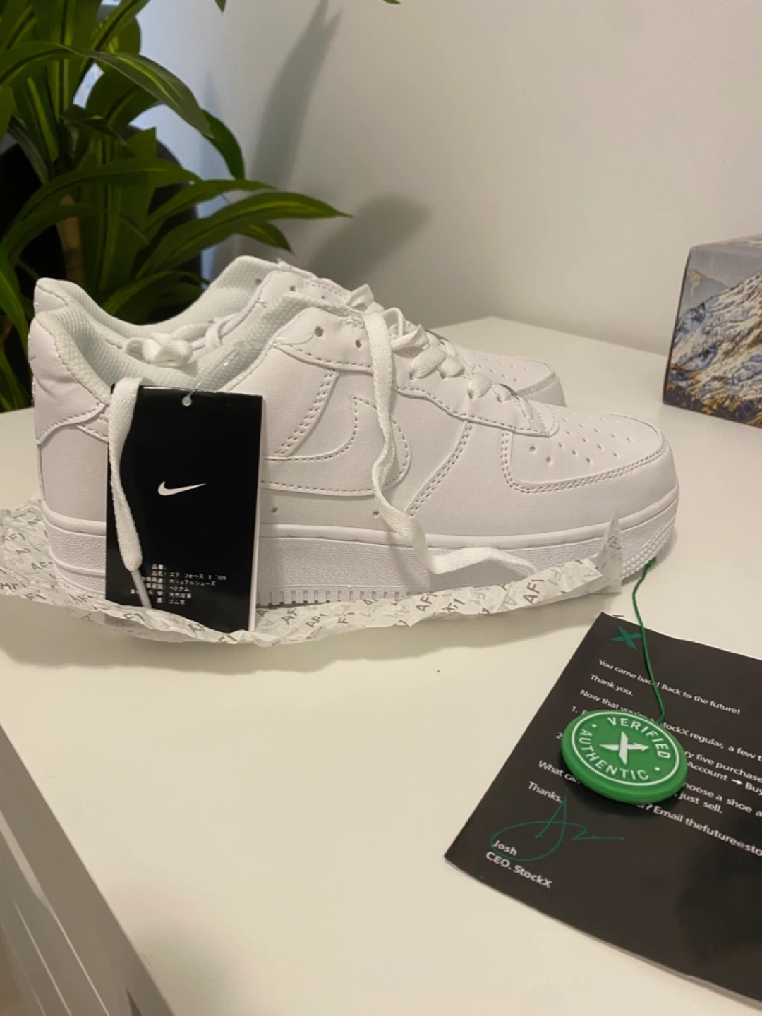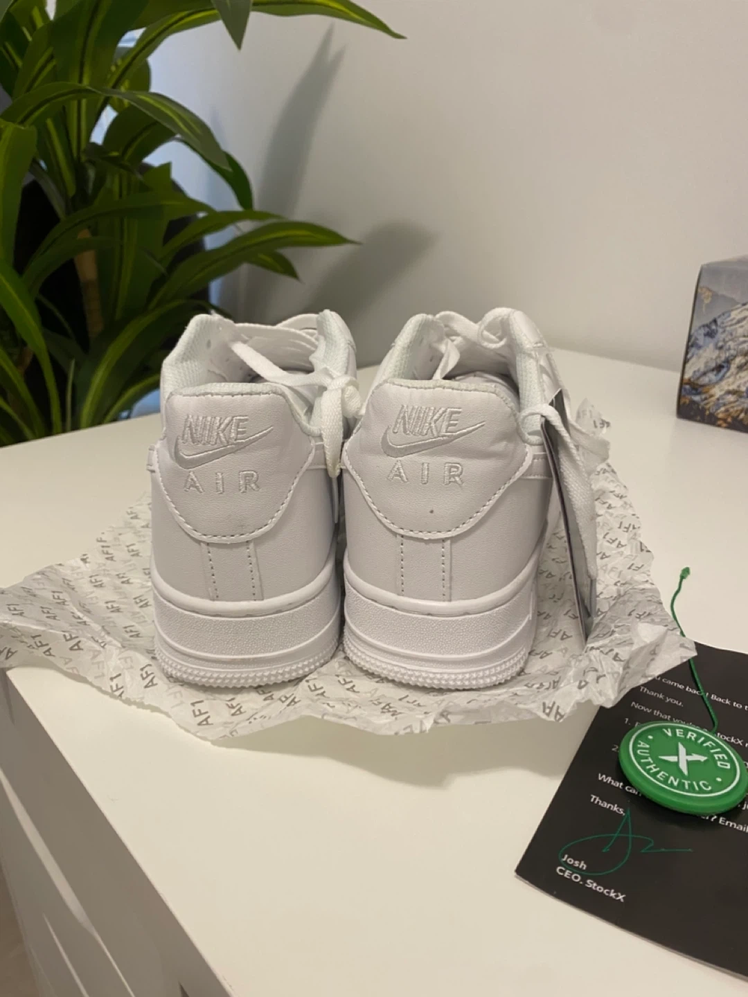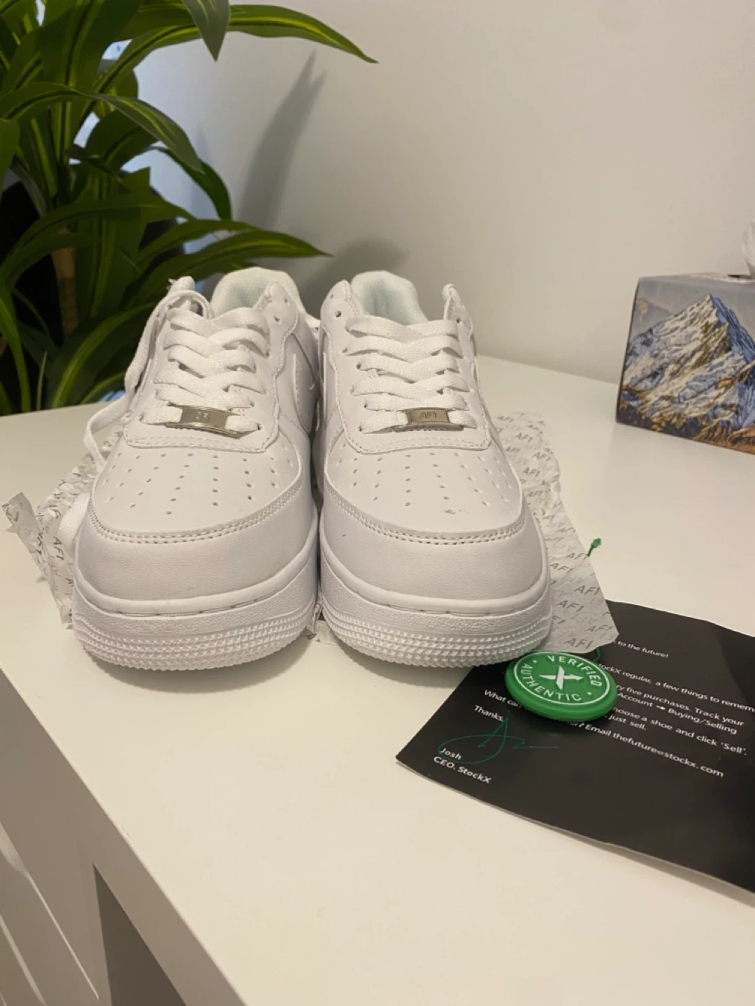 1:1 White AF1 new never worn, comes with stockx verification tag. It doesn’t have a box. Only dm if your actually buying don’t waste my time.