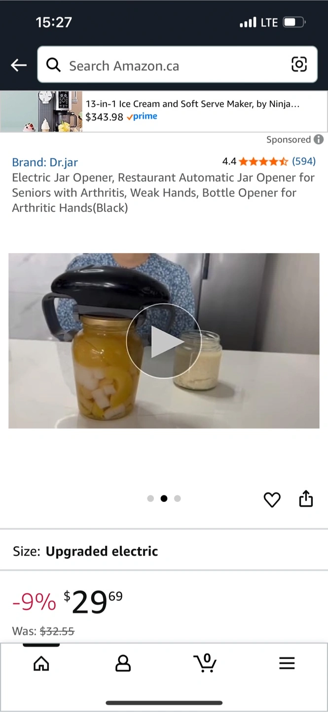 Selling an electric jar opener designed for seniors or anyone with arthritis or weak hands. It's in excellent condition and makes opening jars a breeze! Originally, it was priced at $32.55, but it's currently on sale for $29.69.