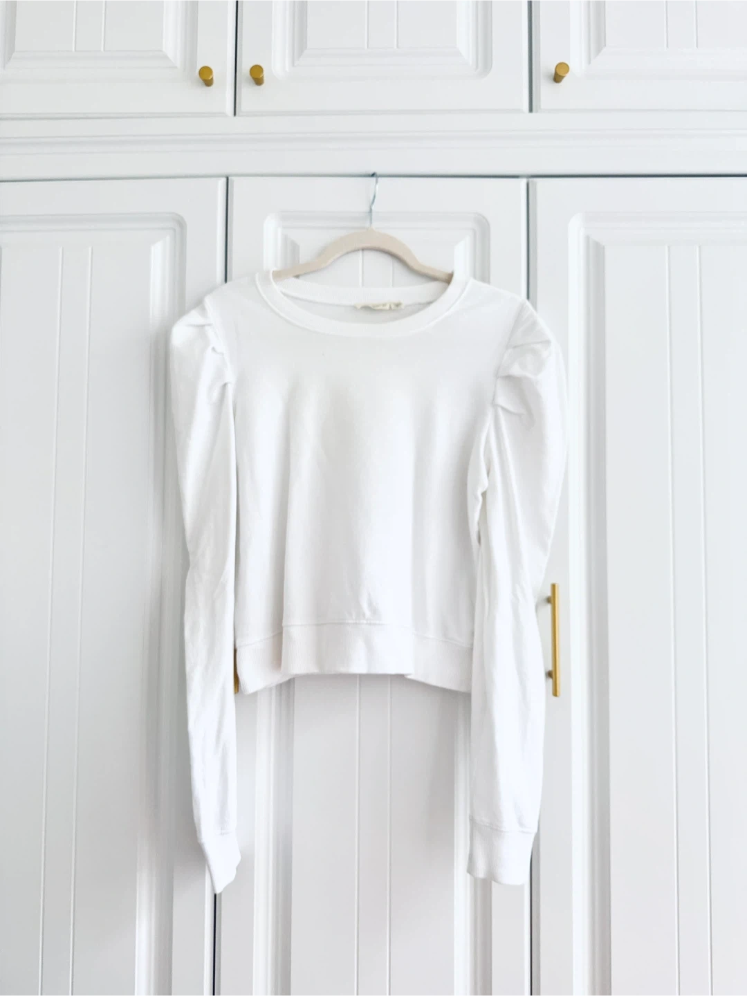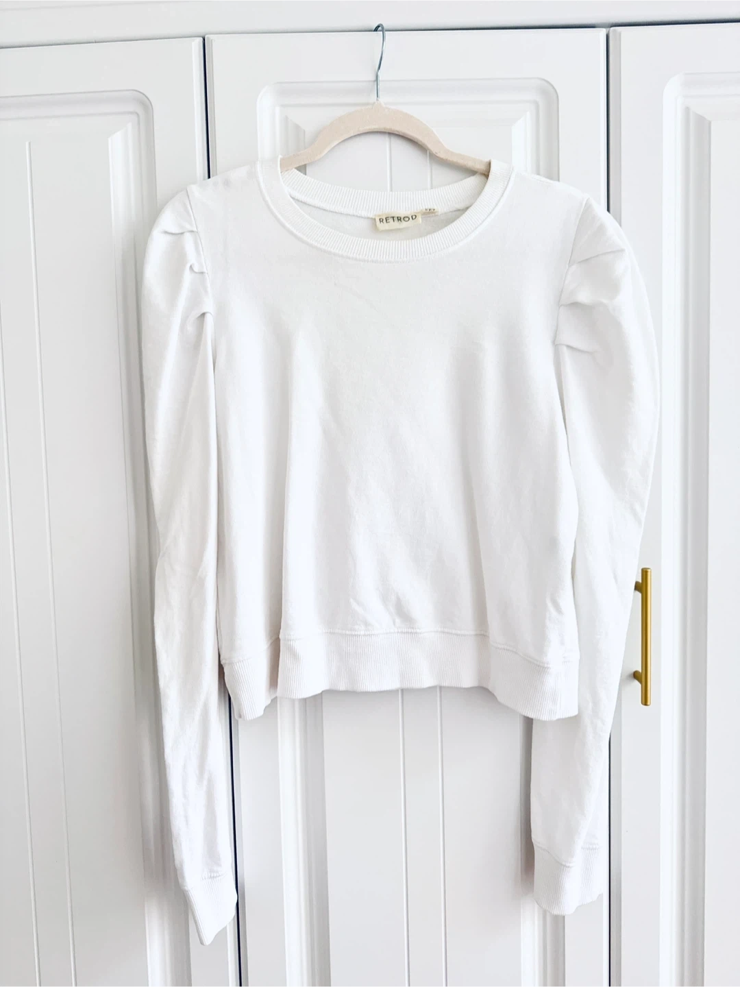 Cozy up in this cute RETROD sweatshirt! It's a lovely white colour and features stylish puff sleeves for a little extra structure and detail. The material is 100% cotton, so it's super comfy. Size is S/P (Small/Petite). Great condition. Natural, breathable cotton, so cozy and cute. 🛍️ Wanna bundle and save? Check out my other listings— if you something you like, just ask✨ Always happy to give a deal for a multiple item pickup.
