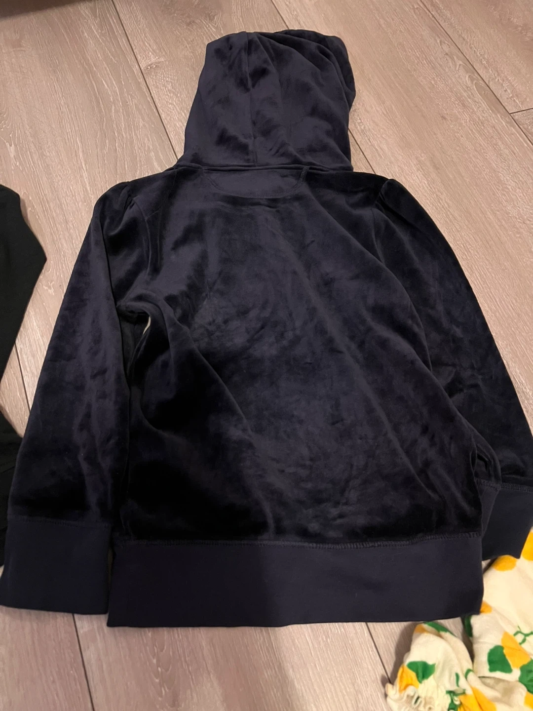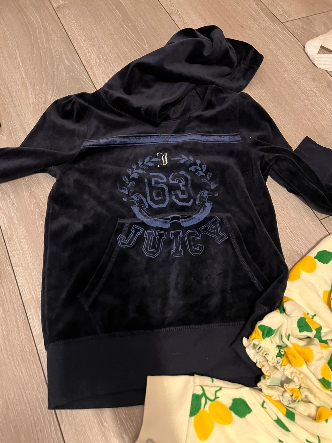 Cozy navy blue velour hoodie from Juicy Couture! It's in great condition and perfect for adding a touch of casual glam to your wardrobe. Size small