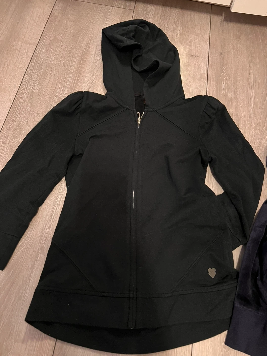 Selling a Juicy Couture dark blue like black color hoodie. It's in great condition and has a cute ruffle detail on the back. Perfect for layering or wearing on its own! Size small