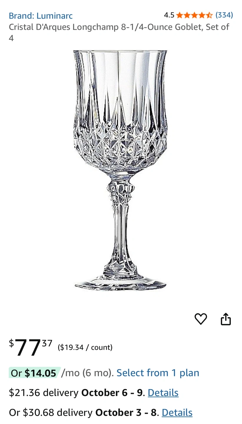 Selling a set of 4 Cristal D'Arques Longchamp goblets. These glasses hold 8-1/4 ounces each. They have a beautiful, classic design that would look great in any home. Originally bought for $77.37