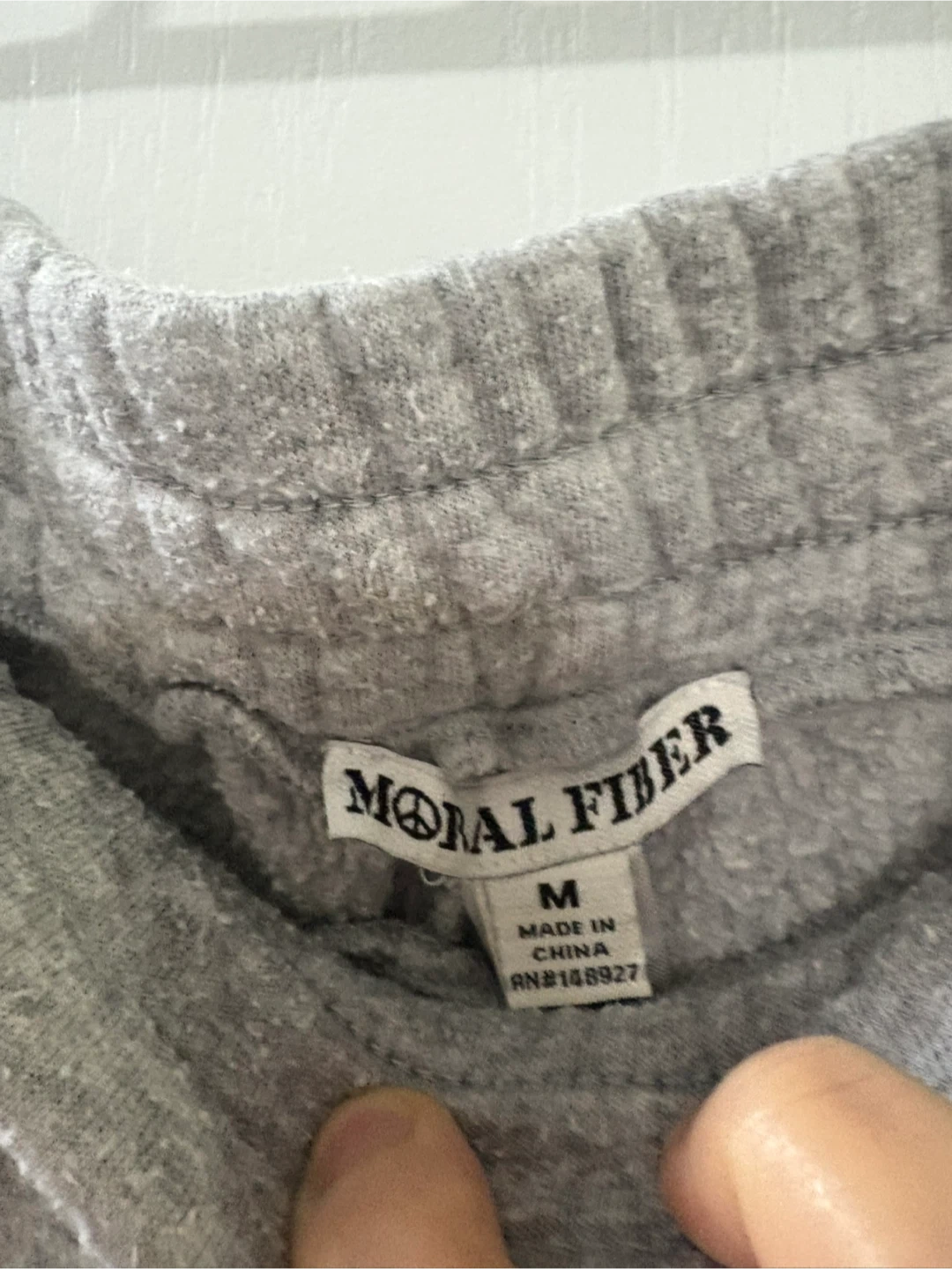 Moral Fiber sweatpants size medium. They're a nice light grey colour and in good condition. Perfect for lounging around the house or running errands! Pickup in Brampton📍 Please checkout my other listings ℹ thanks 😊