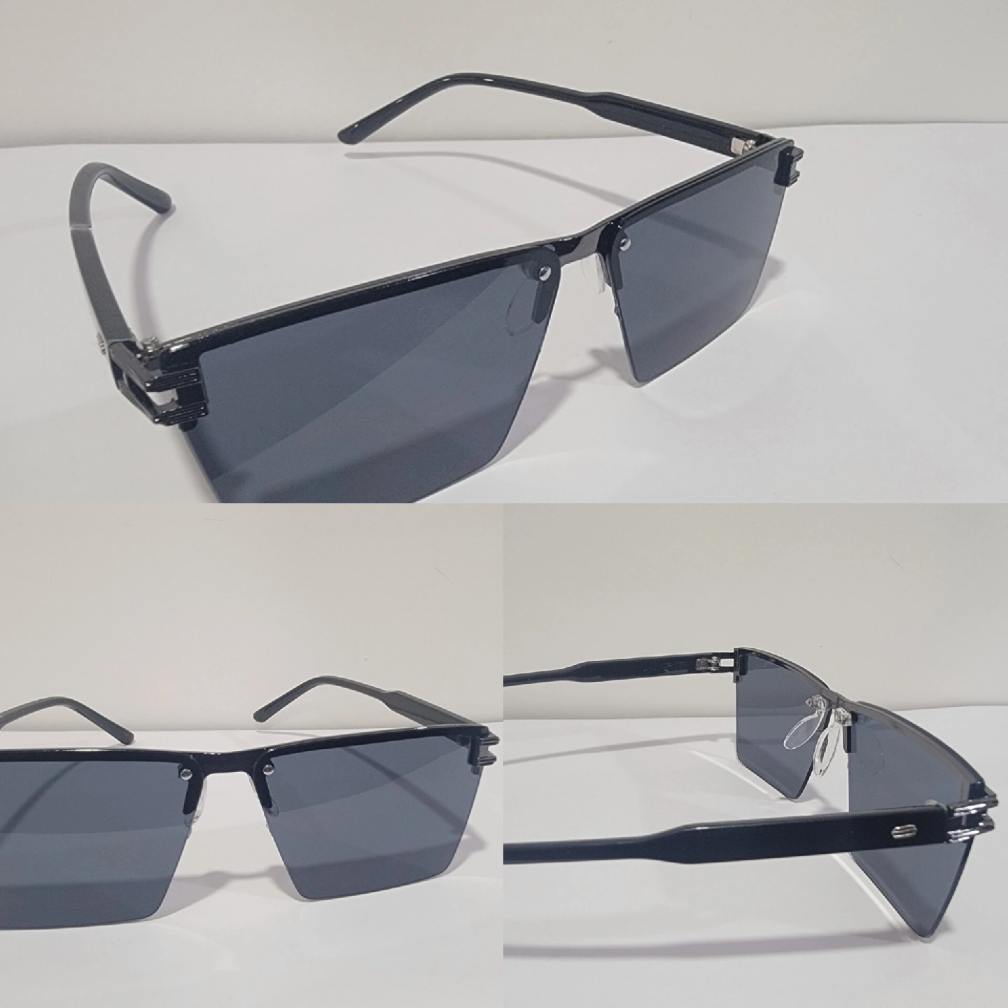 Selling a pair of rimless sunglasses in black! These sunglasses are in great condition and ready for a new owner. They have a sleek and modern look that will complement any outfit