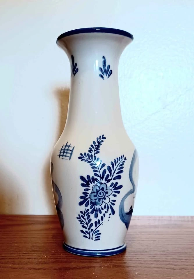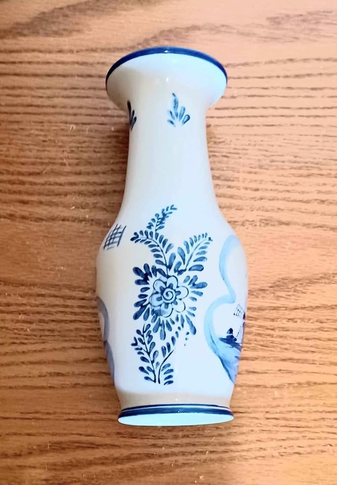 Vtg, Hand Painted , Windmill & Floral Collectible , Porcelain Delft Vase Household, Table Decor, Water Bottle For Size Reference Excellent Condition ,no chips or cracks Please check out my other posts