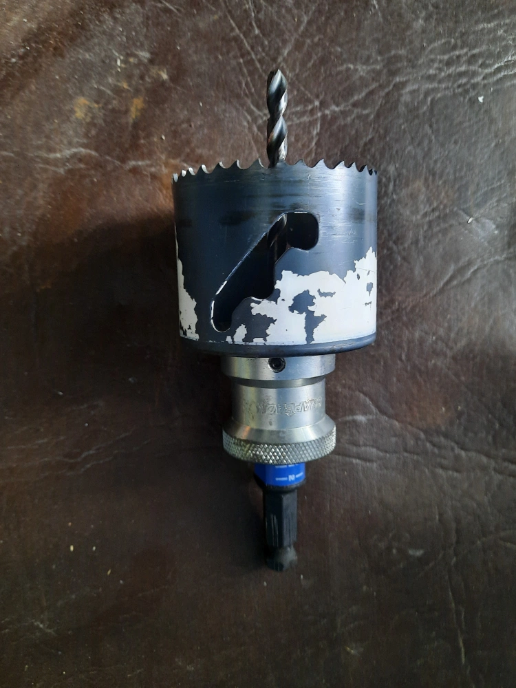 Selling a used hole saw drill bit. It shows some signs of wear and tear, but is still functional all teeth are good and it's a Lenox 2½in hole saw the bit can support other size hole saw sizes