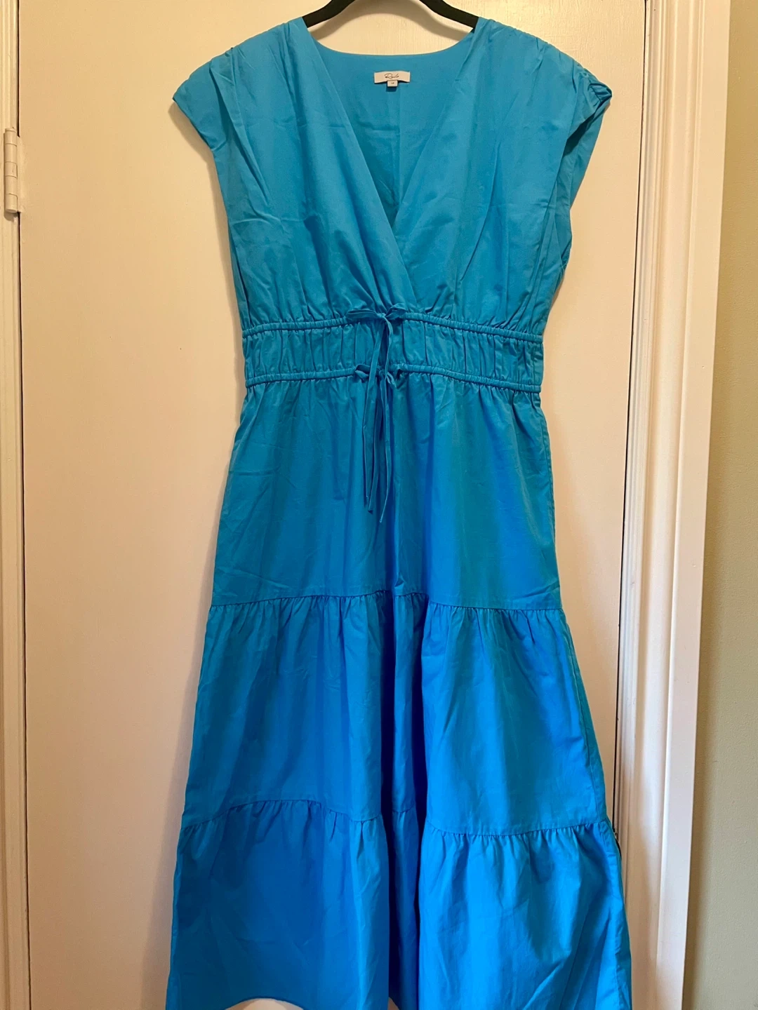 A lovely blue tiered dress from Rails in size medium! It has a flattering V-neck and a comfortable, flowy fit. Perfect for summer days or a casual outing. The dress is in great condition and ready for a new home