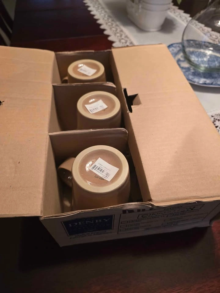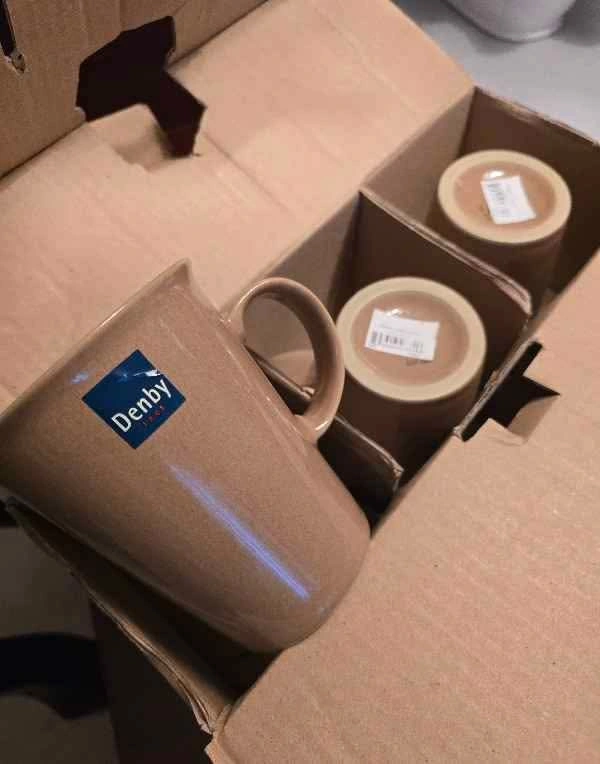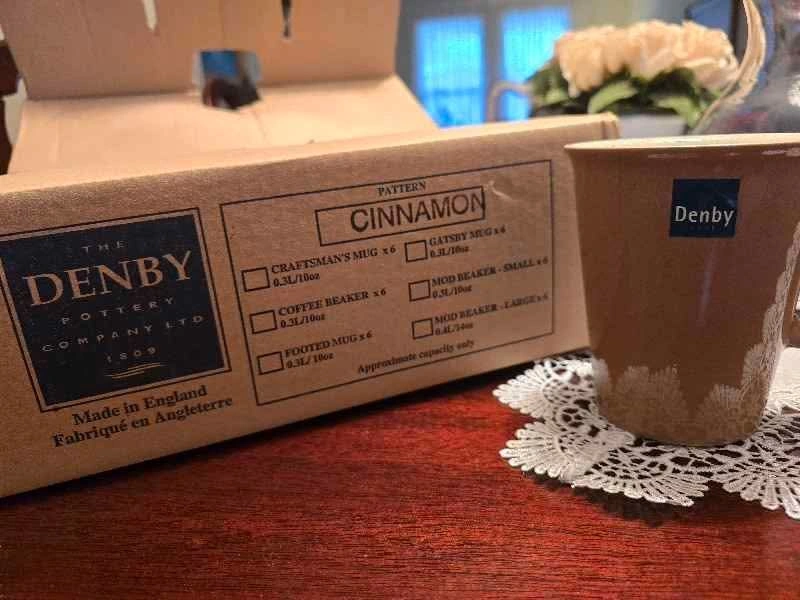 3 coffee mugs 10 oz Colour: light beige inside, taupe outside Brand: Denby Pottery, made in England AUTHENTIC New in box, never used Check out my other matching stoneware. Less expensive than buying from Denby direct! Cash sale please. Pick up only in North Oshawa