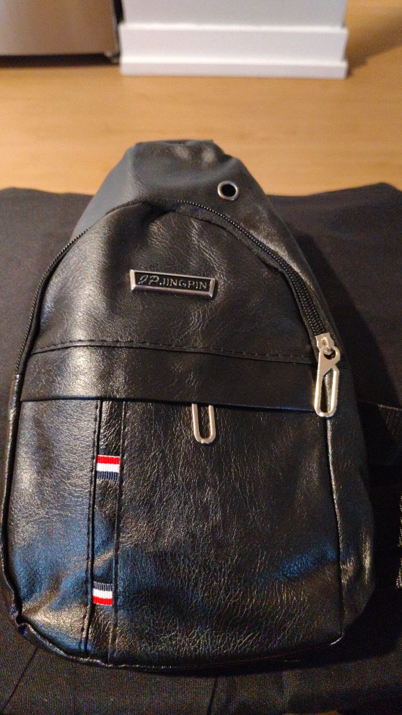 Selling a stylish black leather sling bag from JP.JINGPIN. It's in great shape and perfect for carrying your essentials around town. The bag features a zippered main compartment and a smaller front pocket for easy access to your phone or wallet. The adjustable strap makes it comfortable to wear across your body. Great for everyday use!