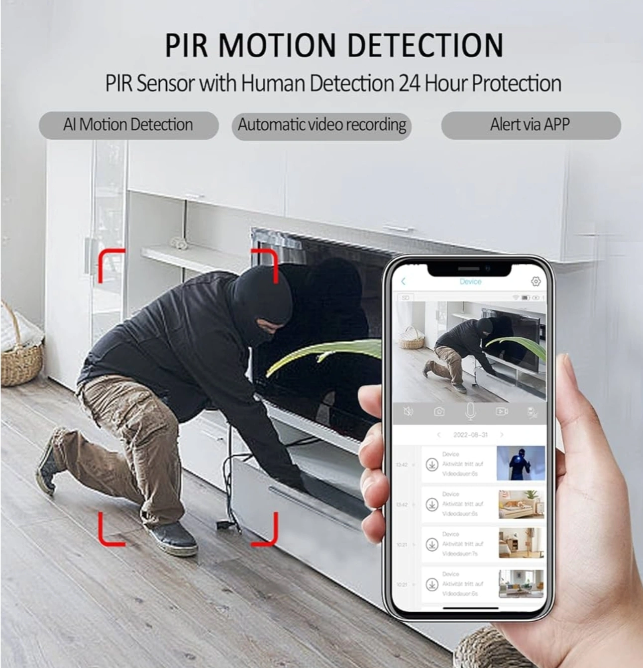 [4K Resolution]Our home security camera delivers clear 4K live streaming, allowing you to monitor your pet or baby in crisp detail. It features advanced night vision to stay visible even in the dark, protecting your home with a 150° wide angle of view and seamless surveillance for peace of mind. [Motion Detection] The camera is equipped with intelligent motion detection technology that alerts you via the app as soon as it detects movement.You are always aware of the security status of your home, no matter where you are. [Camera Sharing]View WiFi camera footage from different smartphone devices. People can see everything that's going on in their home at the same time using just one camera, better security in the home. [Easy To Use ]This camera is easy for people to use, just follow the instructions and have the camera up and running in less than 1 minutes. [Camera for home Security] With the APP, you can remotely access the camera anytime and anywhere, view the surveillance video in real time, and keep track of the latest developments in your home or office. It's easy to keep yourself safe wherever you are. All you need to do is open the app immediately.