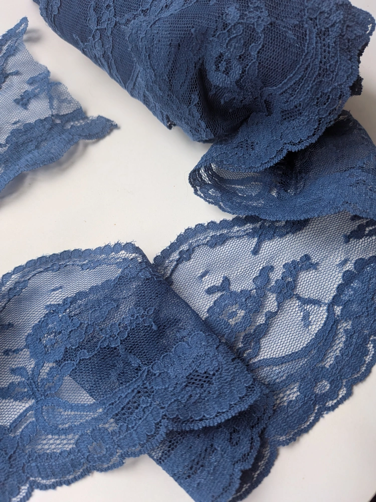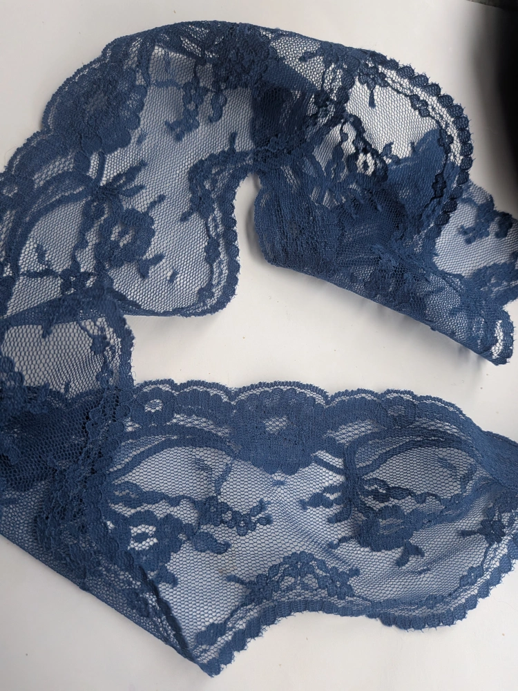 THREE YARDS beautiful vintage blue lace trim, perfect for adding a delicate touch to any sewing or crafting project! The intricate floral pattern adds a unique and elegant detail New, not used, end of roll Cash only, no etransfers Location: Etobicoke. Rathburn Rd and Renforth dr. Etobicoke Olympium nearby