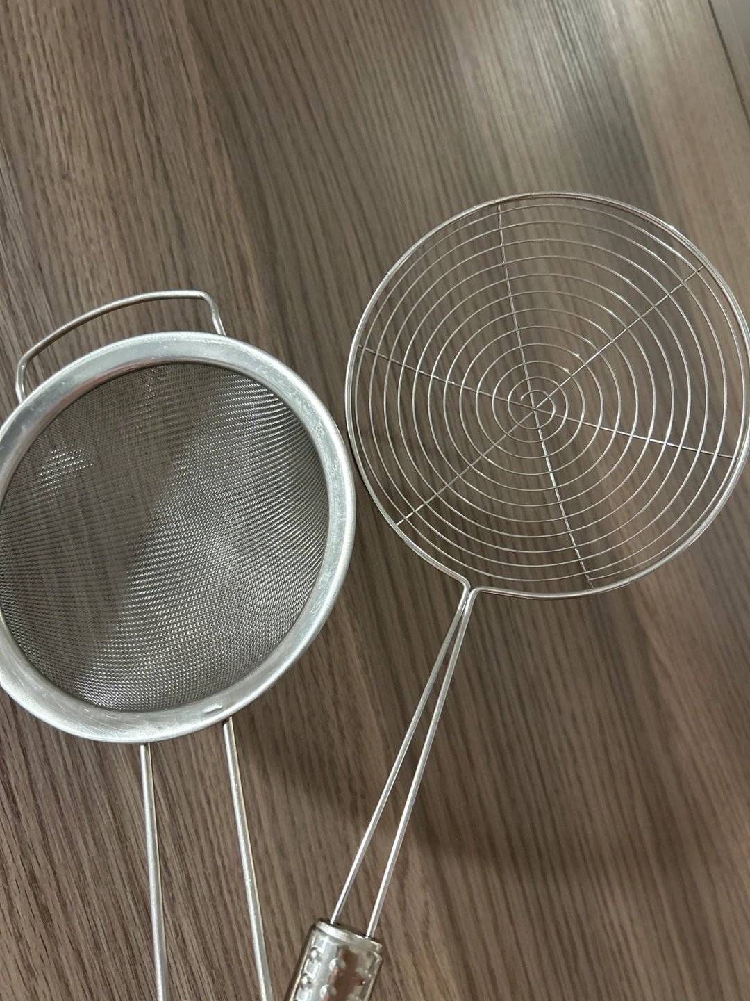 $3 ea and both for $5 Selling a handy kitchen strainer and skimmer set. They're both in great shape and ready to help with your cooking needs! Perfect for straining pasta or skimming broth.