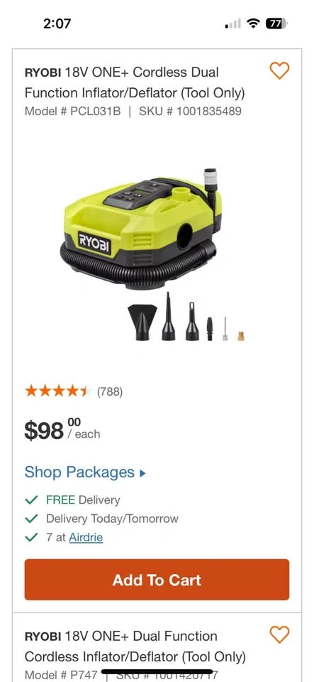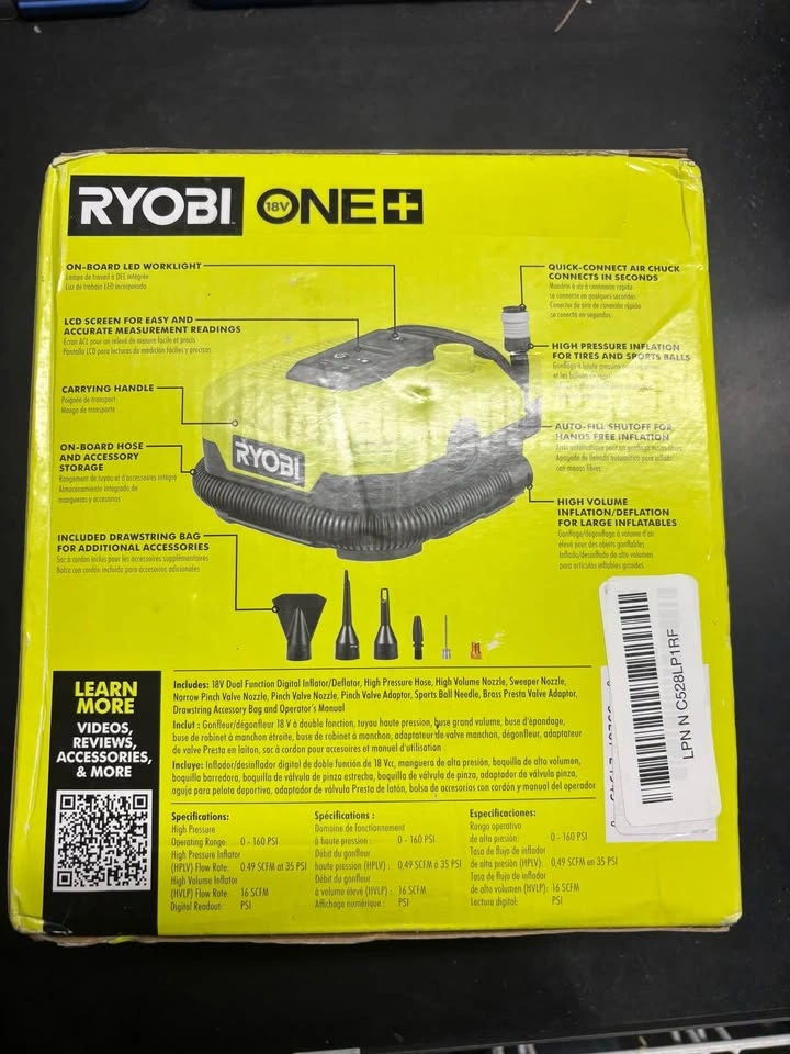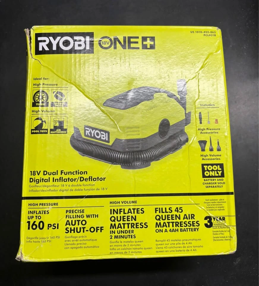 RYOBI 18V ONE+ Cordless Dual Function Inflator/Deflator Model # PCL031B. Brand new still an unopened box. Pick up in SW Airdrie