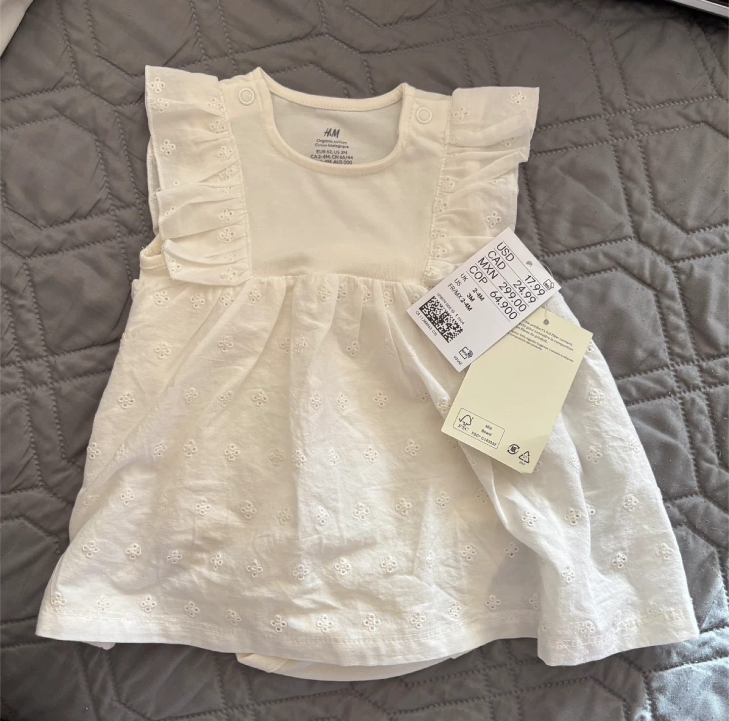 H&M white baby girl dress with onesie attached. Brand new with tags. Size 2-4 months